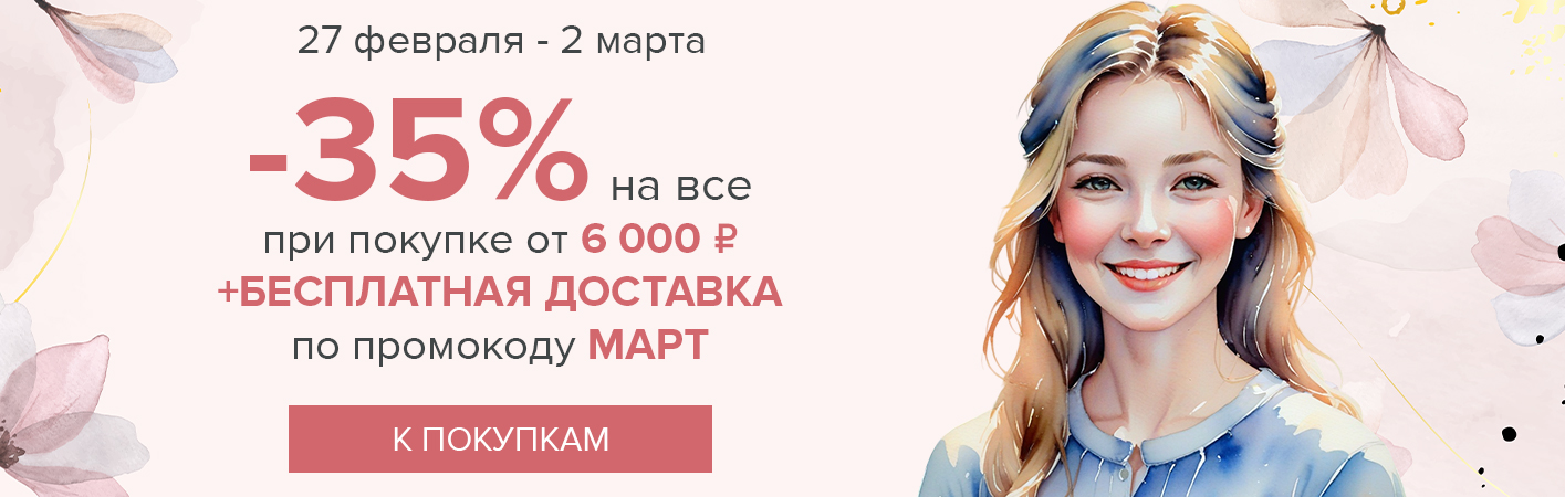27 февраля-2 марта -35% на все и бесплатная доставка при покупке от 6000 рублей по промокоду МАРТ