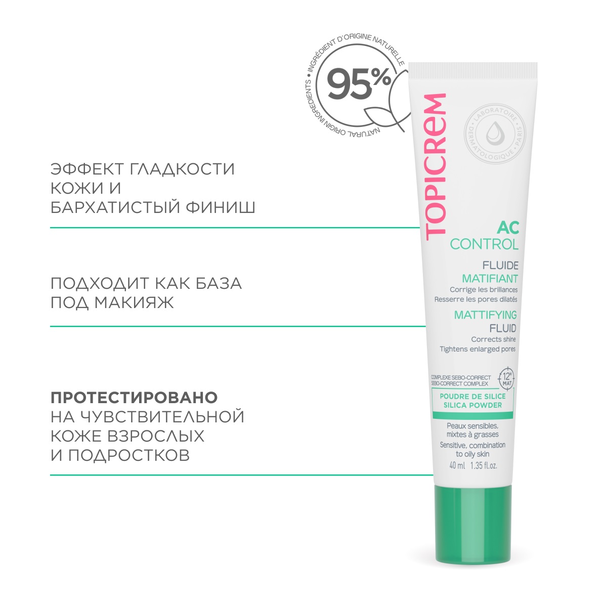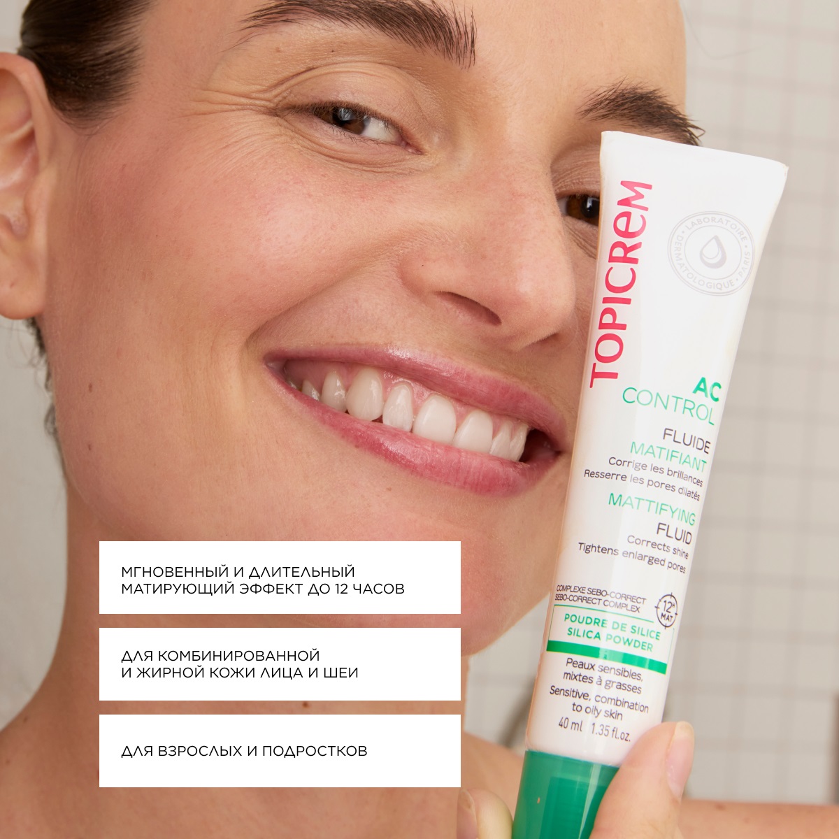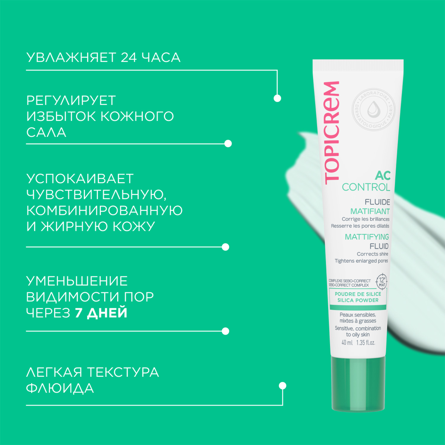 Матирует мгновенно до 12 часов благодаря комбинации матирующих пудр. Сужает поры и улучшает текстуру кожи. При желании этот увлажняющий матирующий флюид можно использовать в качестве основы под макияж. Подходит для детей и подростков.