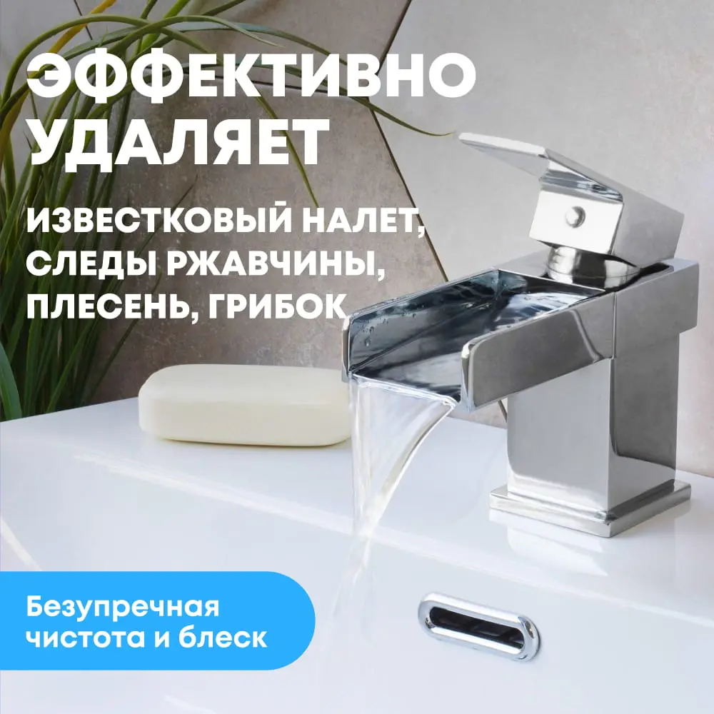 Экологичное средство на основе фруктовых кислот с распылителем обеспечивает безупречную чистоту и блеск ванны и ванных комнат, акриловых ванн, душевых кабин и стекол, джакузи, раковин, сантехники, унитаза, писсуаров, хромированных смесителей на кухне, а также кафеля, плитки, керамики, стекла, нержавеющей стали, пластмассы и других кислостойких поверхностей. Специальная формула средства для мытья ванны и душевых кабин позволяет бережно и эффективно удалять известковый налет, ржавчину, водный камень и мыльные разводы от шампуня, геля, кондиционера и пасты.