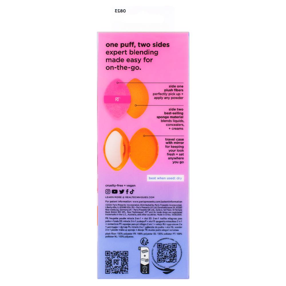 Real Techniques Night Brights! 2в1 Miracle Powder Puff – это двусторонняя пуховка для пудры, которая идет в комплекте с элегантным футляром для путешествий. Внутри кейса находится зеркало – с ним можно легко поправить или освежить макияж в любой ситуации.