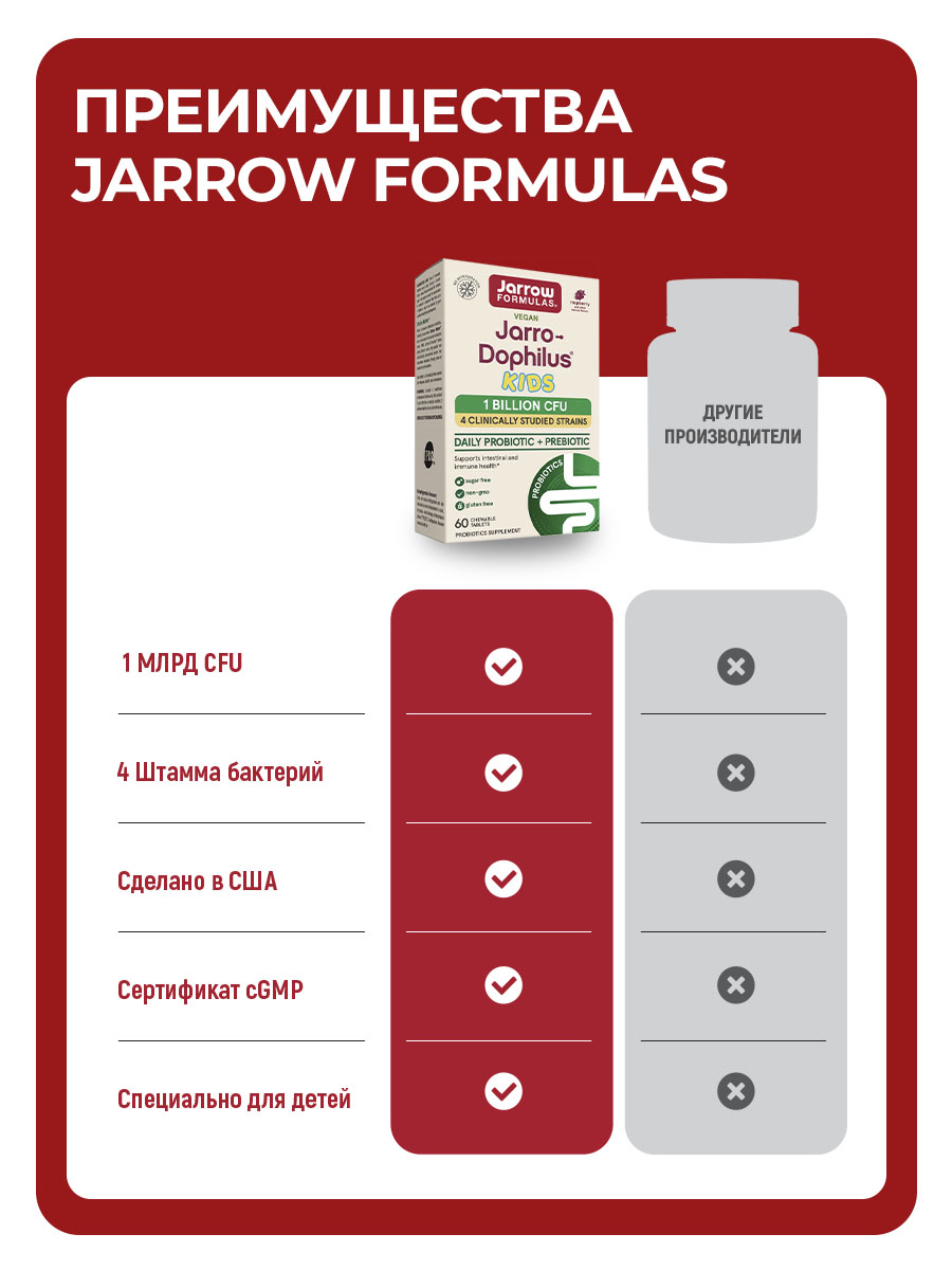 Комплекс Jarro-Dophilus Kids 1 млрд КОЕ со вкусом натуральной малины, 60 таблеток