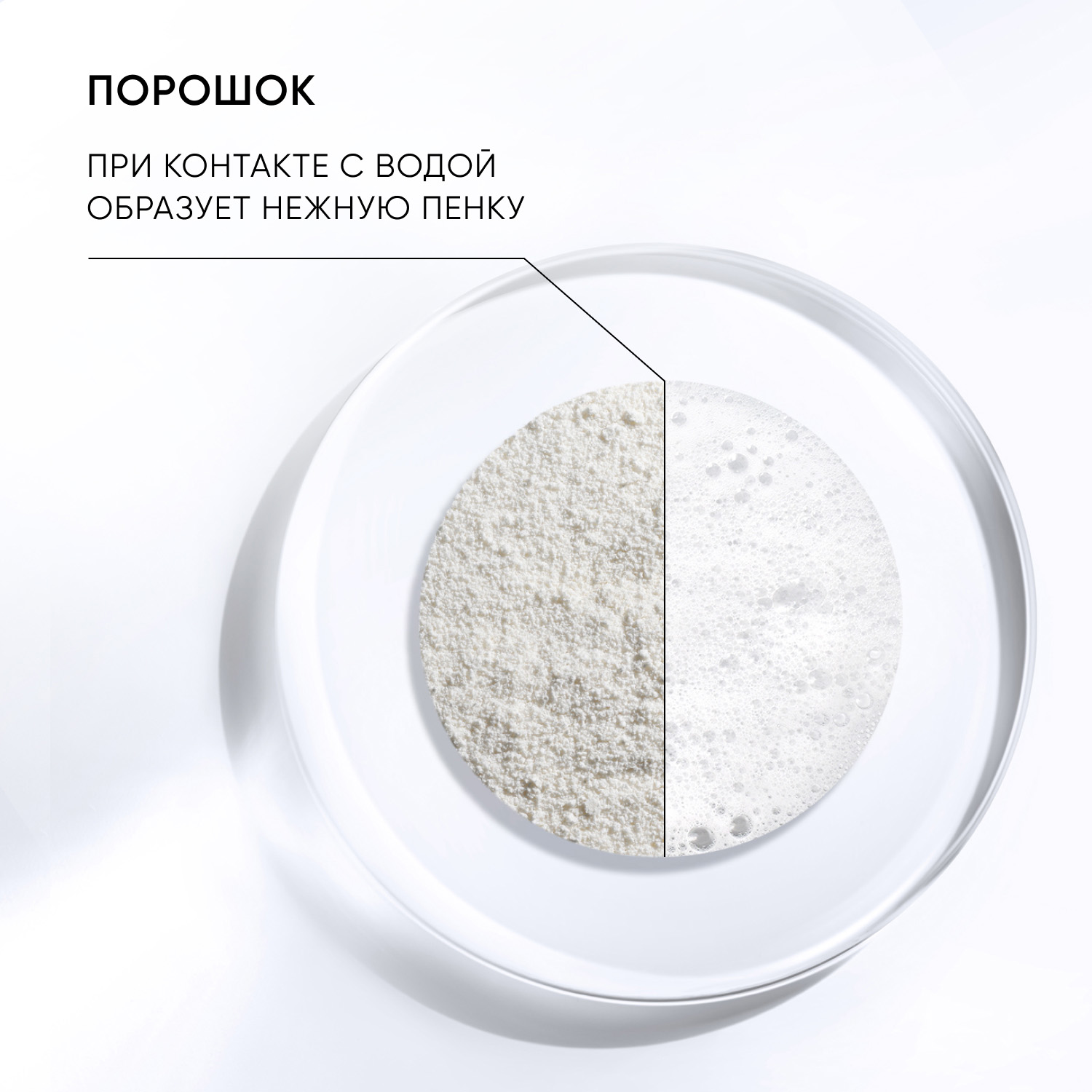 Мелкодисперсная текстура пудры при контакте с водой образует воздушную пенку, чье бережное воздействие при умывании не нарушает липидный баланс кожи.