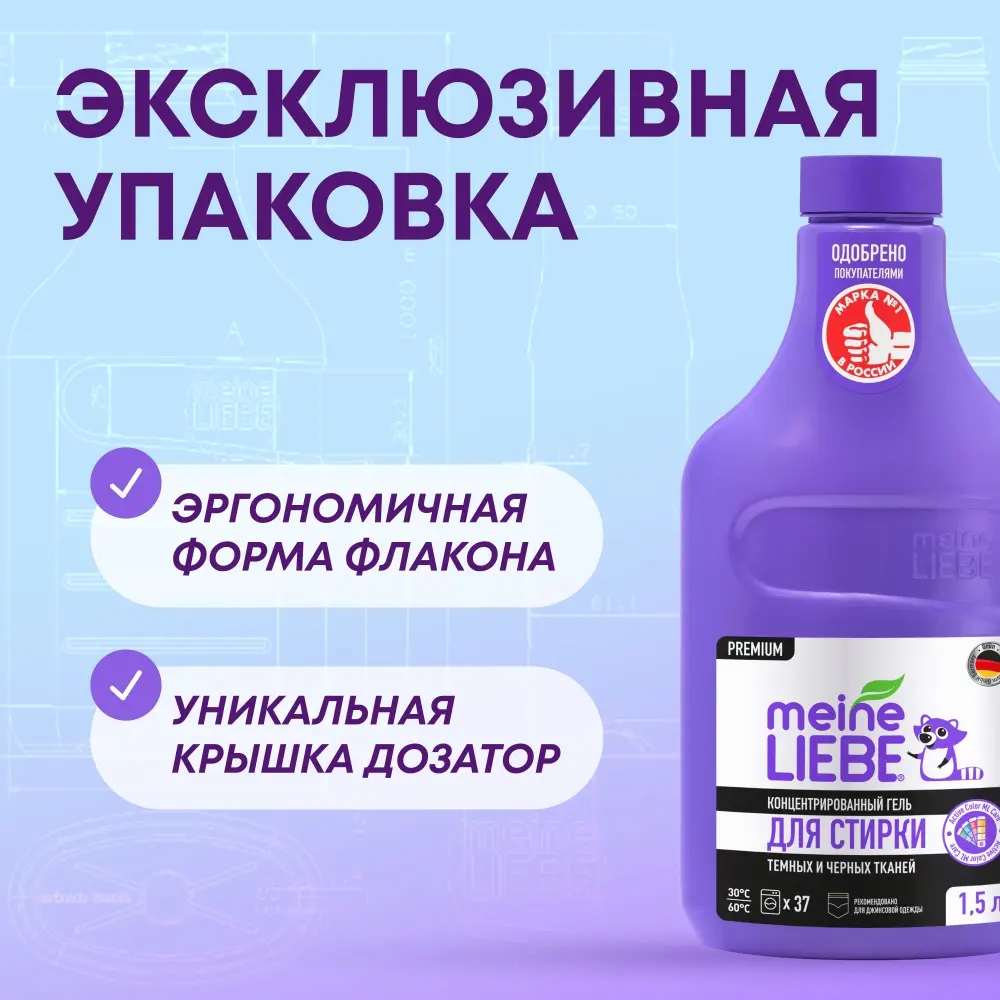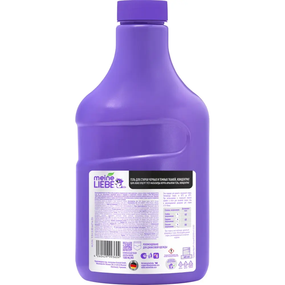 Концентрированный гель Meine Liebe разработан специально для стирки джинсовых, черных и темных тканей. Гель полностью выполаскивается и не оставляет разводов. Подходит для изделий из цветных синтетических, хлопчатобумажных и льняных тканей, а также тканей из смешанных волокон. Эффективен даже в прохладной воде и на коротких циклах стирки.