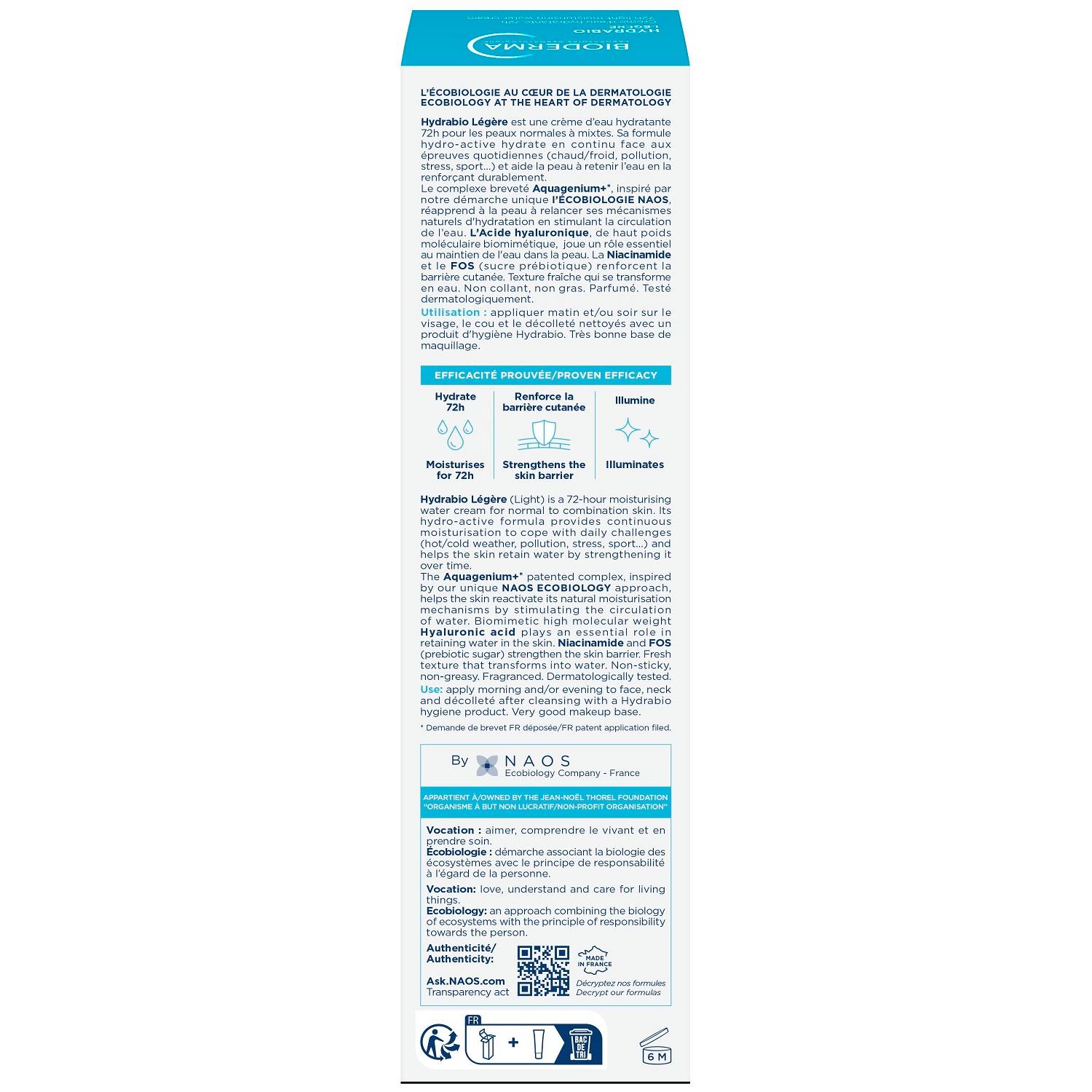 Легкий крем для нормальной и комбинированной кожи Hydrabio увлажняет и питает кожу в течение 72 часов, возвращает ей естественное сияние и укрепляет защитный барьер. Гидроактивная формула крема обеспечивает непрерывное увлажнение для борьбы с ежедневными вызовами кожи (жаркая/холодная погода, загрязнения окружающей среды, стресс, занятия спортом) и помогает коже удерживать влагу, укрепляя её.