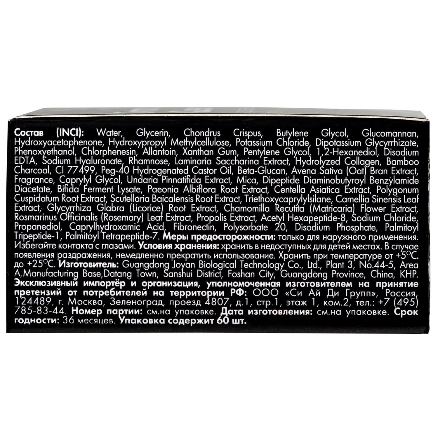 Состав (INCI): Water, Glycerin, Chondrus Crispus, Butylene Glycol, Glucomannan, Hydroxyacetophenone, Hydroxypropyl Methylcellulose, Potassium Chloride, Dipotassium Glycyrrhizate, Phenoxyethanol, Chlorphenesin, Allantoin, Xanthan Gum, Pentylene Glycol, 1,2-Hexanediol, Disodium EDTA, Sodium Hyaluronate, Rhamnose, Laminaria Saccharina Extract, Hydrolyzed Collagen, Bamboo Charcoal, CI 77499, Peg-40 Hydrogenated Castor Oil, Beta-Glucan, Avena Sativa (Oat) Bran Extract, Fragrance, Caprylyl Glycol, Undaria Pinnatifida Extract, Mica, Dipeptide Diaminobutyroyl Benzylamide Diacetate, Bifida Ferment Lysate, Paeonia Albiflora Root Extract, Centella Asiatica Extract, Polygonum Cuspidatum Root Extract, Scutellaria Baicalensis Root Extract, Triethoxycaprylylsilane, Camellia Sinensis Leaf Extract, Glycyrrhiza Glabra (Licorice) Root Extract, Chamomilla Recutita (Matricaria) Flower Extract, Rosmarinus Officinalis (Rosemary) Leaf Extract, Propolis Extract, Acetyl Hexapeptide-8, Sodium Chloride, Propanediol, Caprylhydroxamic Acid, Fibronectin, Polysorbate 20, Disodium Phosphate, Palmitoyl Tripeptide-1, Palmitoyl Tetrapeptide-7.