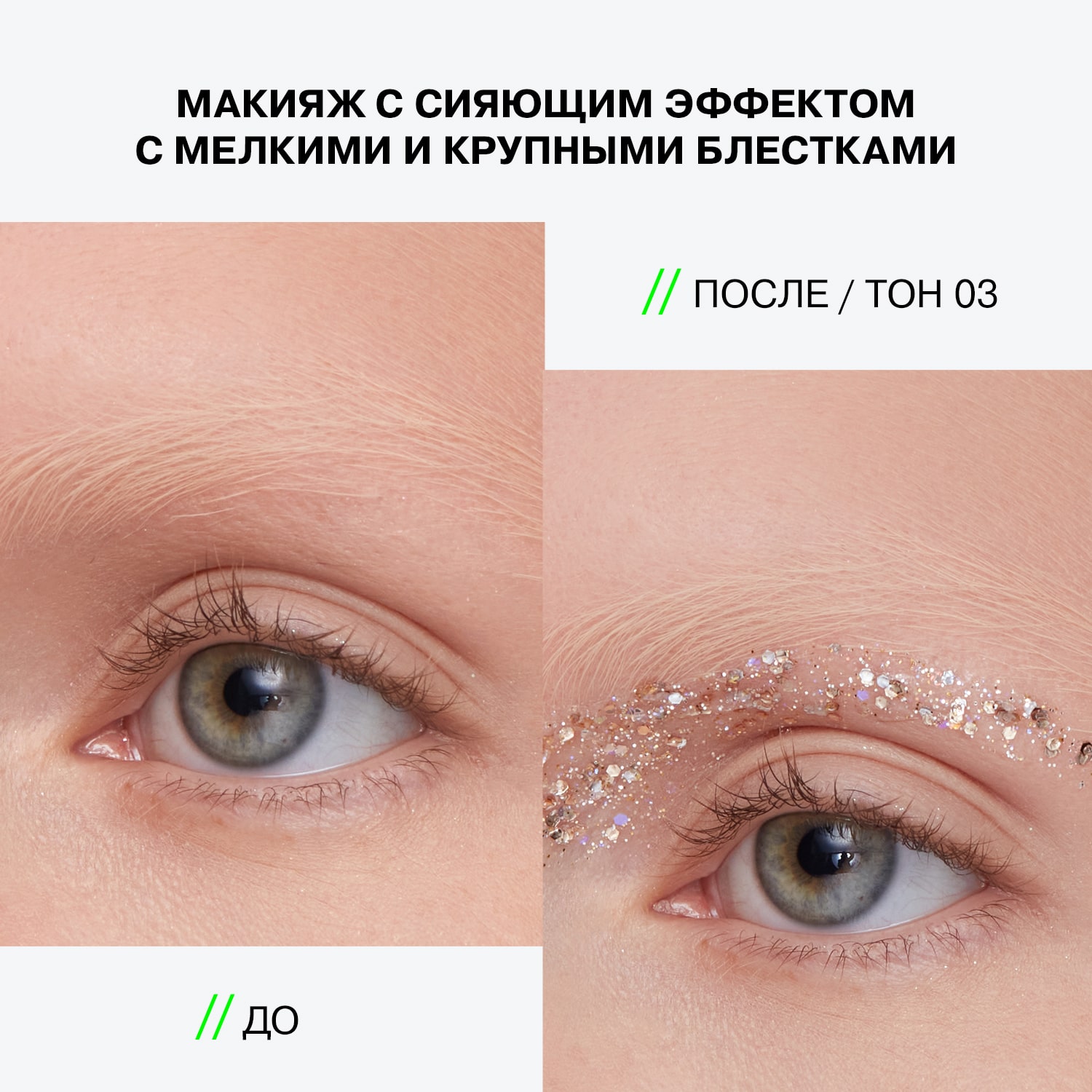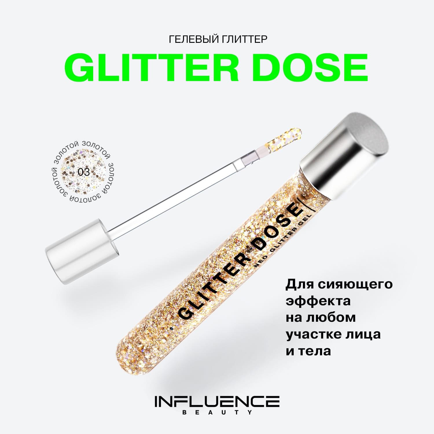 Для более яркого эффекта смешивайте разные цвета глиттера Glitter Dose от Influence Beauty в вашем макияже. Время высыхания на коже зависит от плотности нанесения. После высыхания прозрачной базы глиттер будет держаться весь день.