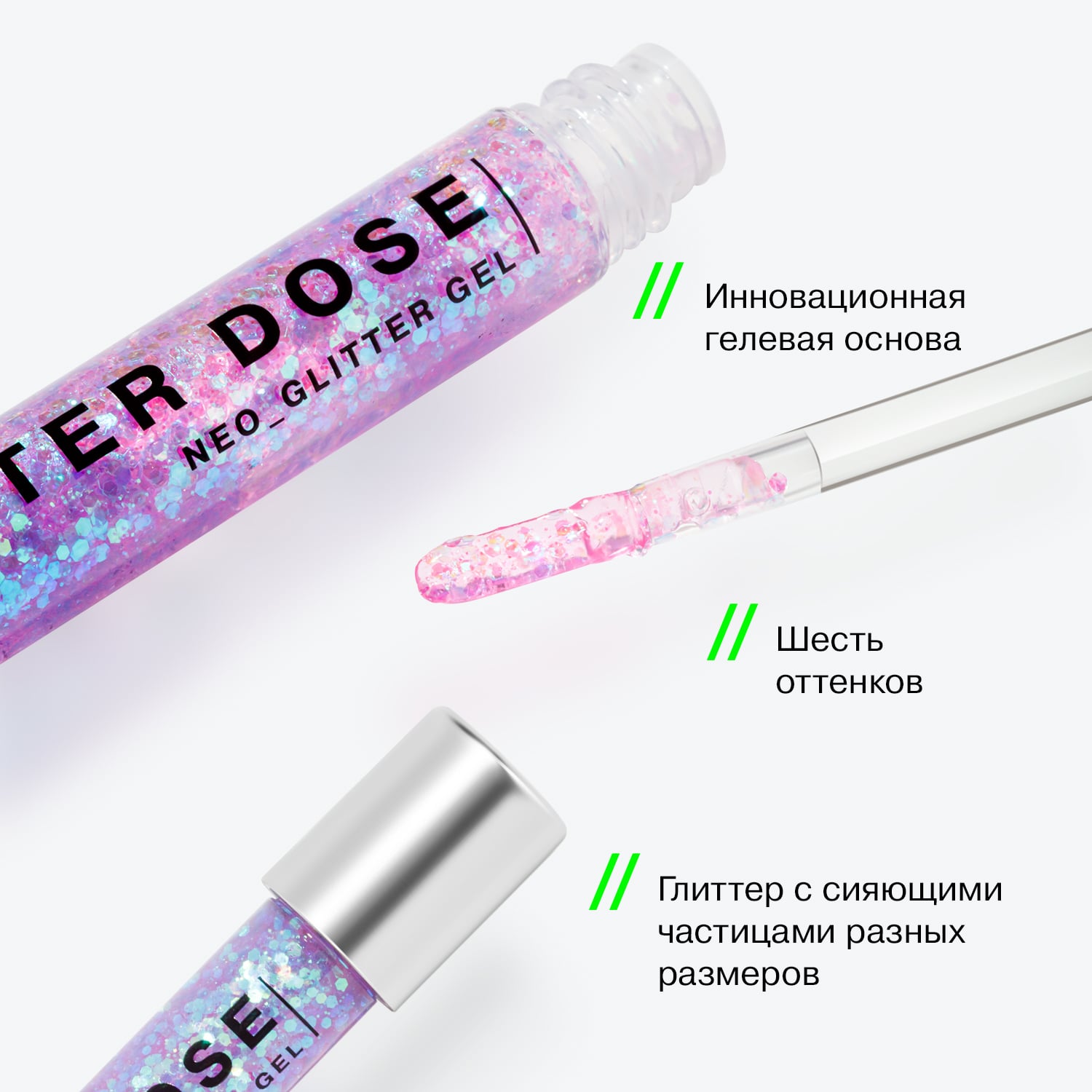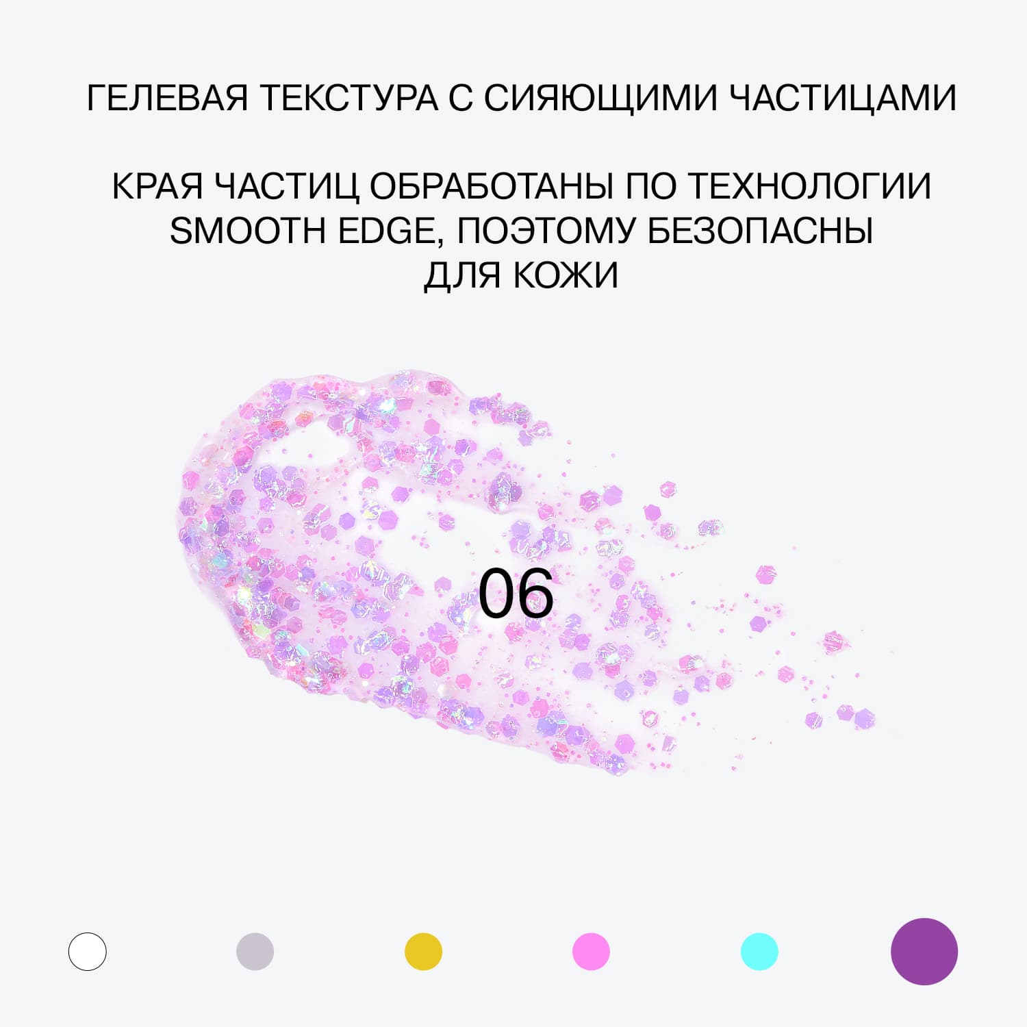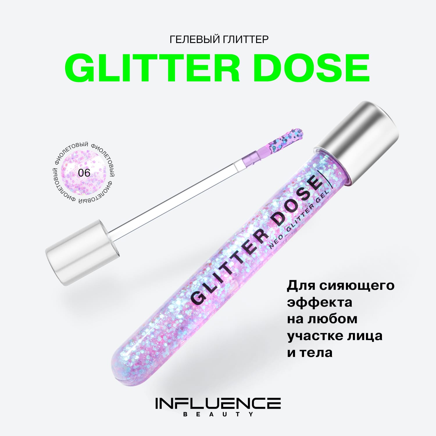 Универсальный глиттер Glitter Dose от Influence Beauty подходят для использования на любом участке лица и тела. Он создан на инновационной гелевой основе, которая мгновенно испаряется с поверхности кожи, быстро и надежно фиксируя глиттер в месте нанесения. Края каждой частицы глиттера Glitter Dose обработаны по технологии Smooth Edge, что позволяет избежать механического повреждения кожи, появления воспалений и аллергических реакций.