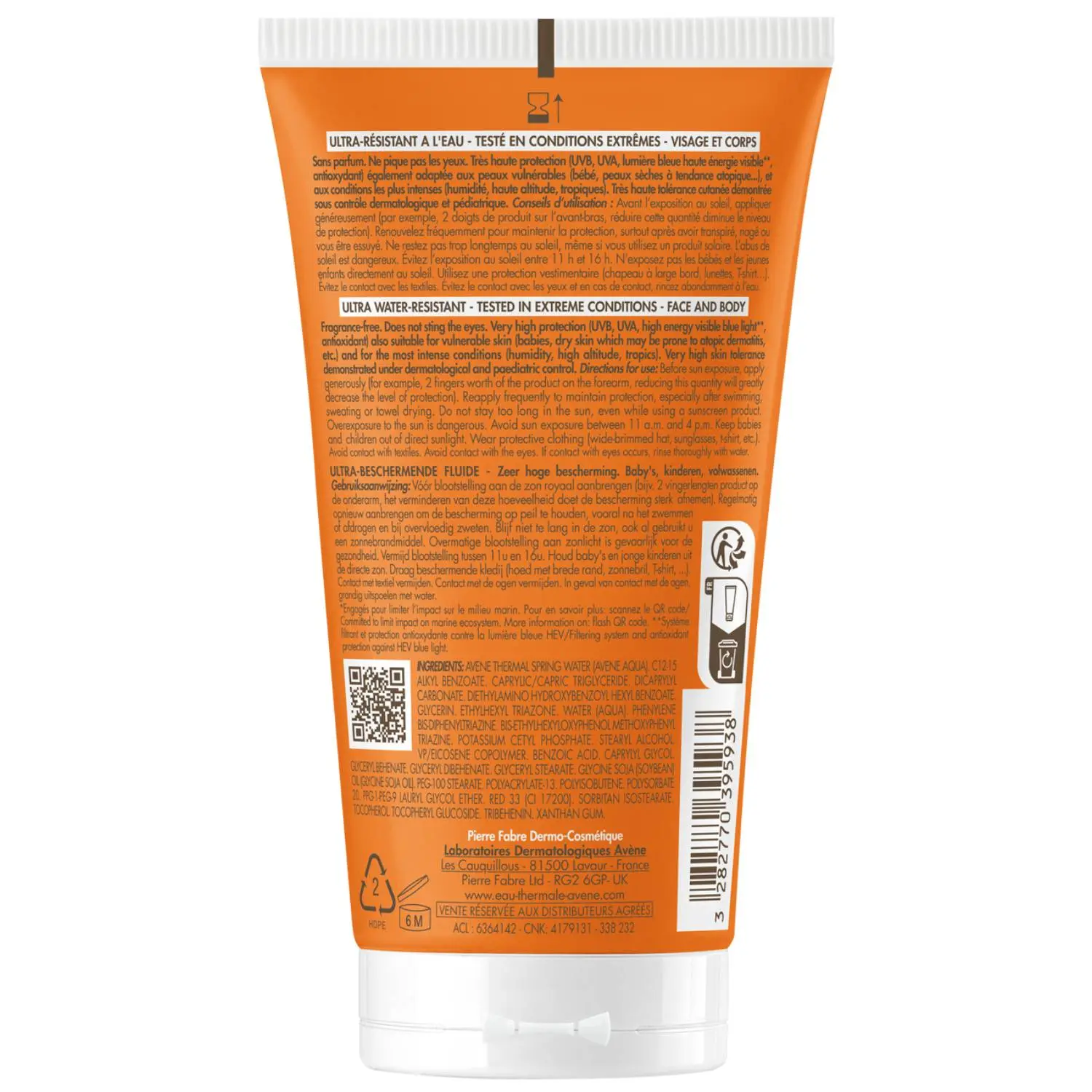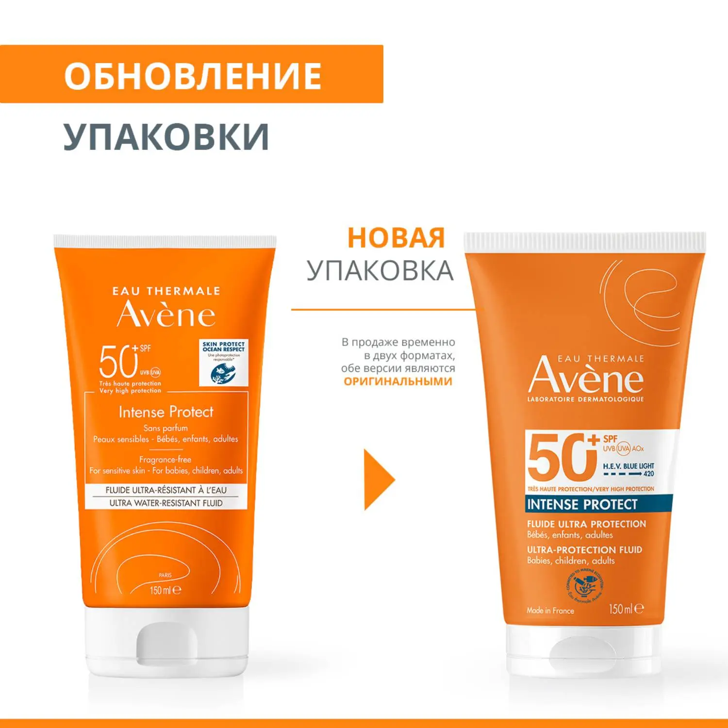 Флюид Avene Intense Protect SPF50+ обеспечивает очень высокий уровень защиты (UVB, UVA, H.E.V. высокоэнергетический видимый синий свет) для самой чувствительной кожи взрослых, детей и младенцев от 28 дней. Ультра-водостойкий. Подходит для лица и тела. Не содержит отдушек, не щиплет глаза.