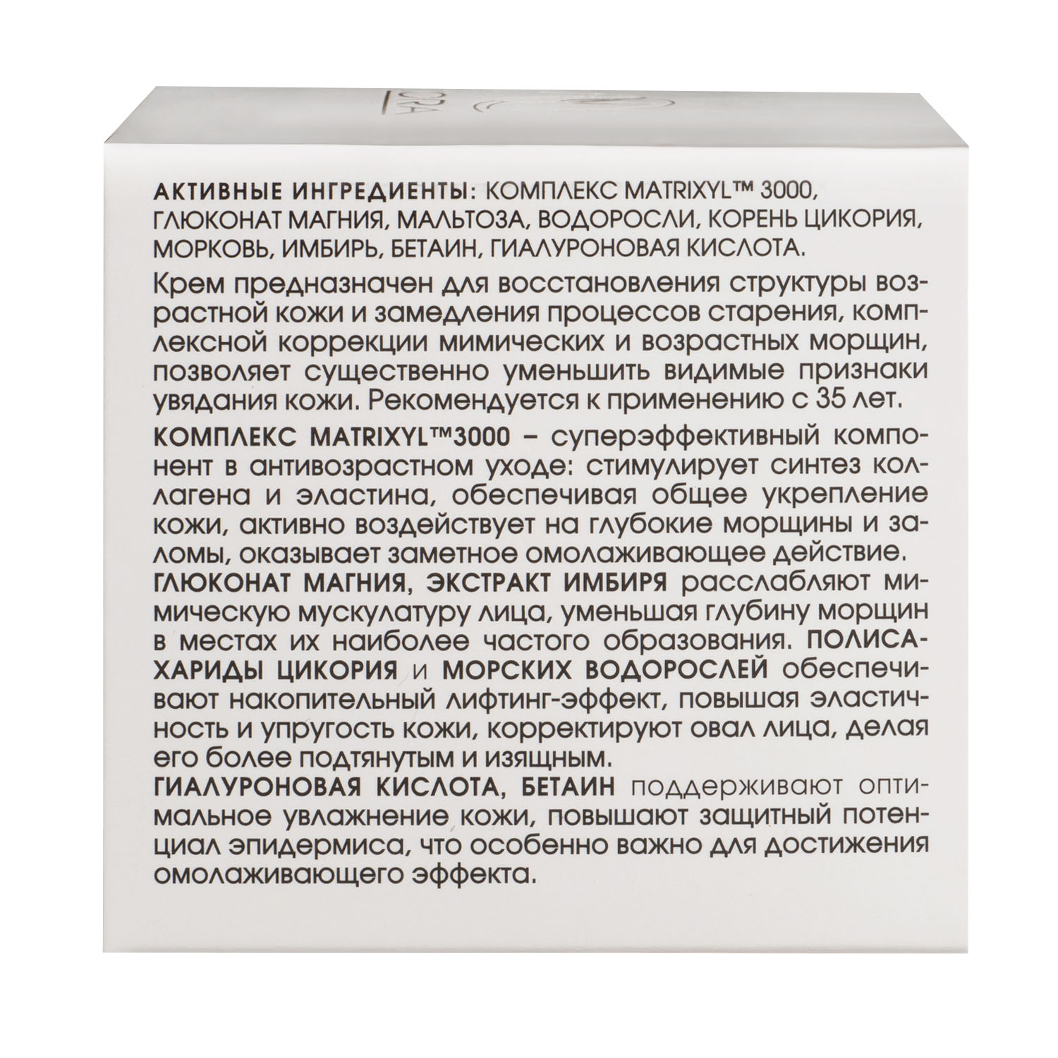 Комплекс MATRIXYL тм3000, бетаин, гиалуроновая кислота, пальмитоил гидролизованных протеинов пшеницы, морковь, имбирь