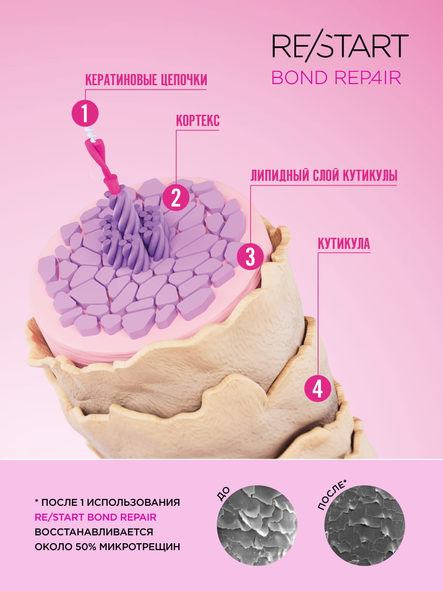 - технология Kerabiotic - проникает в 4 слоя волоса и воздействует на все причины его повреждений, секрет в комбинации 4 технологий, которые восстанавливают волос изнутри