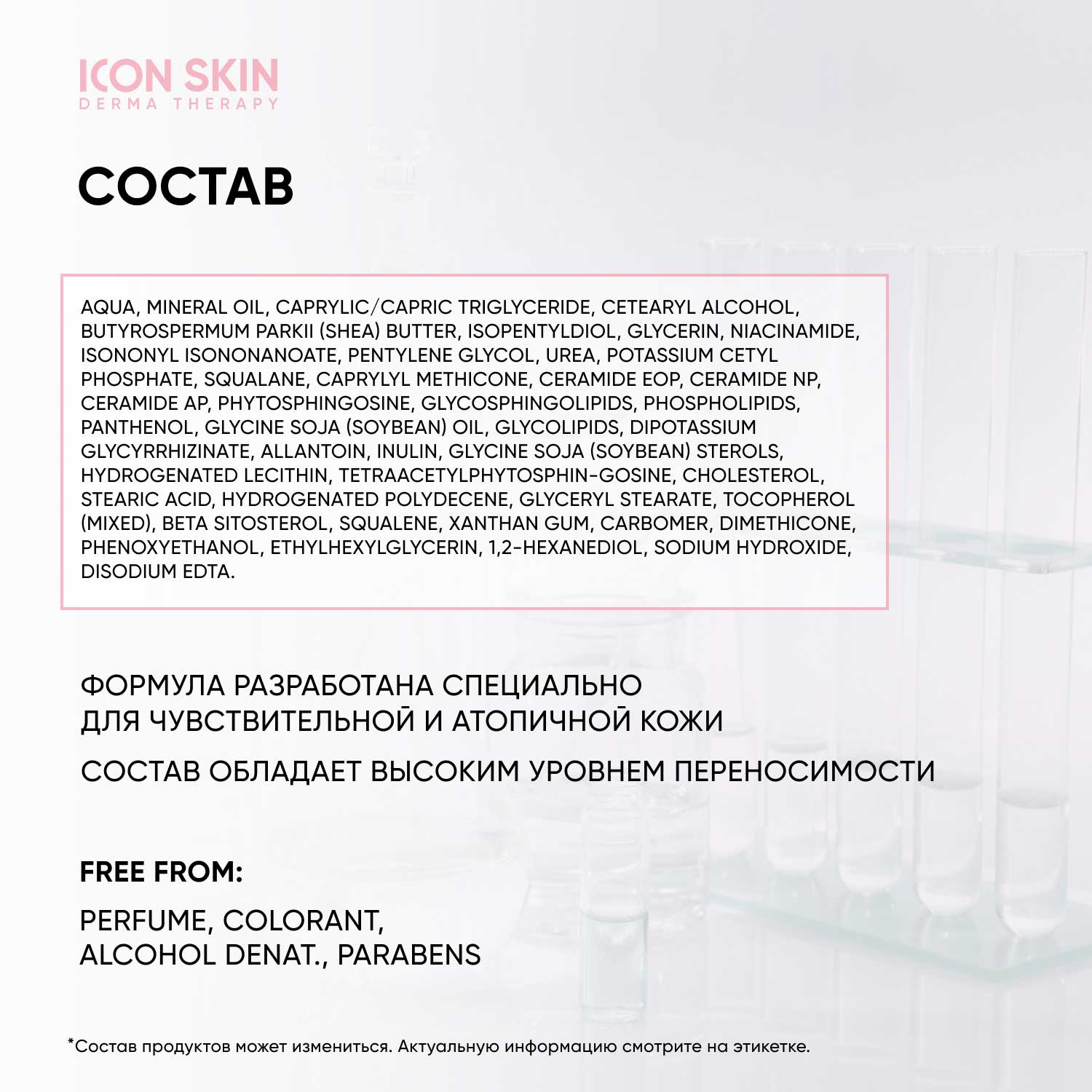Состав: aqua, mineral oil, caprylic/capric triglyceride, cetearyl alcohol, butyrospermum parkii (shea) butter, isopentyldiol, glycerin, niacinamide, isononyl isononanoate, pentylene glycol, urea, potassium cetyl phosphate, squalane, caprylyl methicone, ceramide eop, ceramide np, ceramide ap, phytosphingosine, glycosphingolipids, phospholipids, panthenol, glycine soja (soybean) oil, glycolipids, dipotassium glycyrrhizinate, allantoin, inulin, glycine soja (soybean) sterols, hydrogenated lecithin, tetraacetylphytosphingosine, cholesterol, stearic acid, hydrogenated polydecene, glyceryl stearate, tocopherol (mixed), beta sitosterol, squalene, xanthan gum, carbomer, dimethicone, phenoxyethanol, ethylhexylglycerin, 1,2-hexanediol, sodium hydroxide, disodium edta.