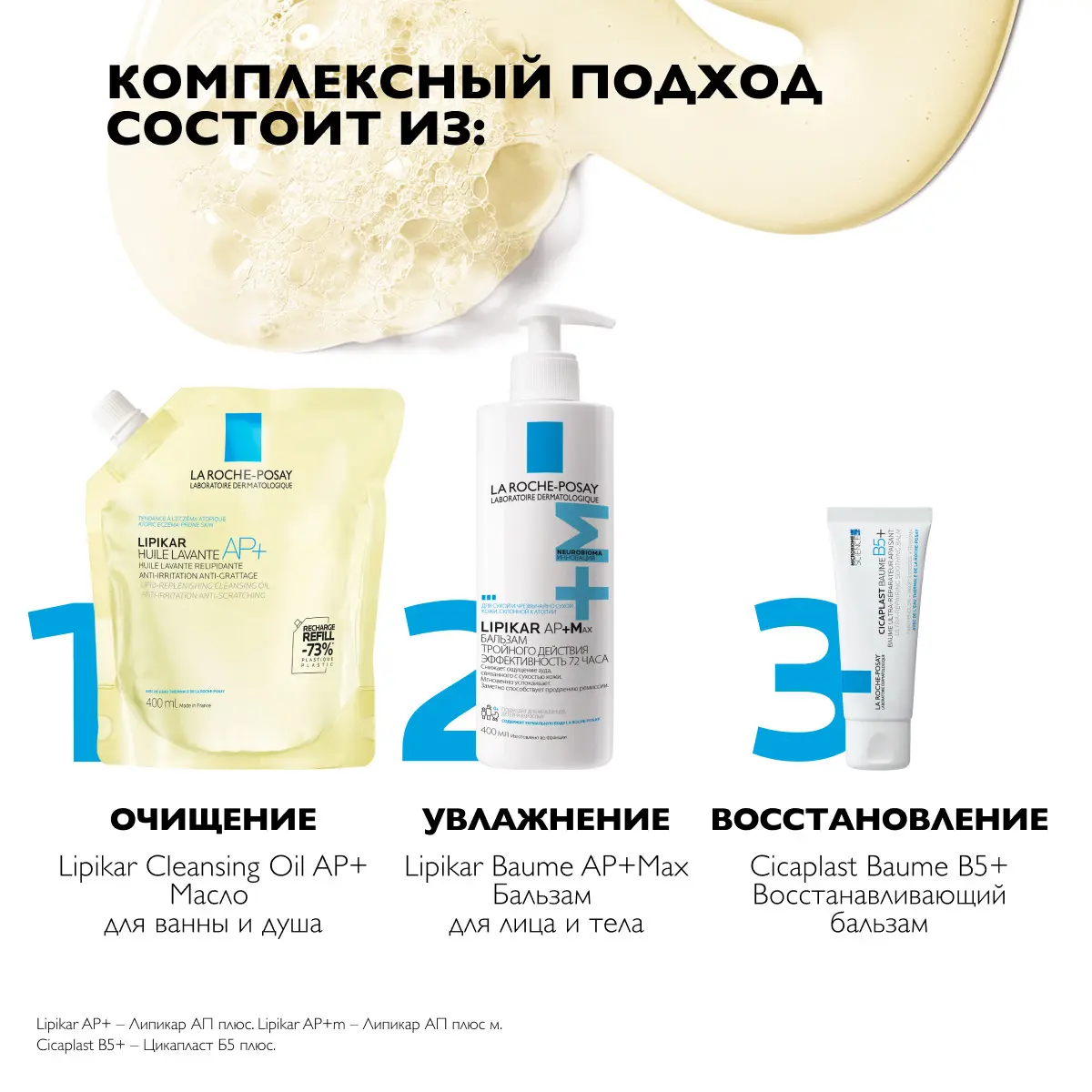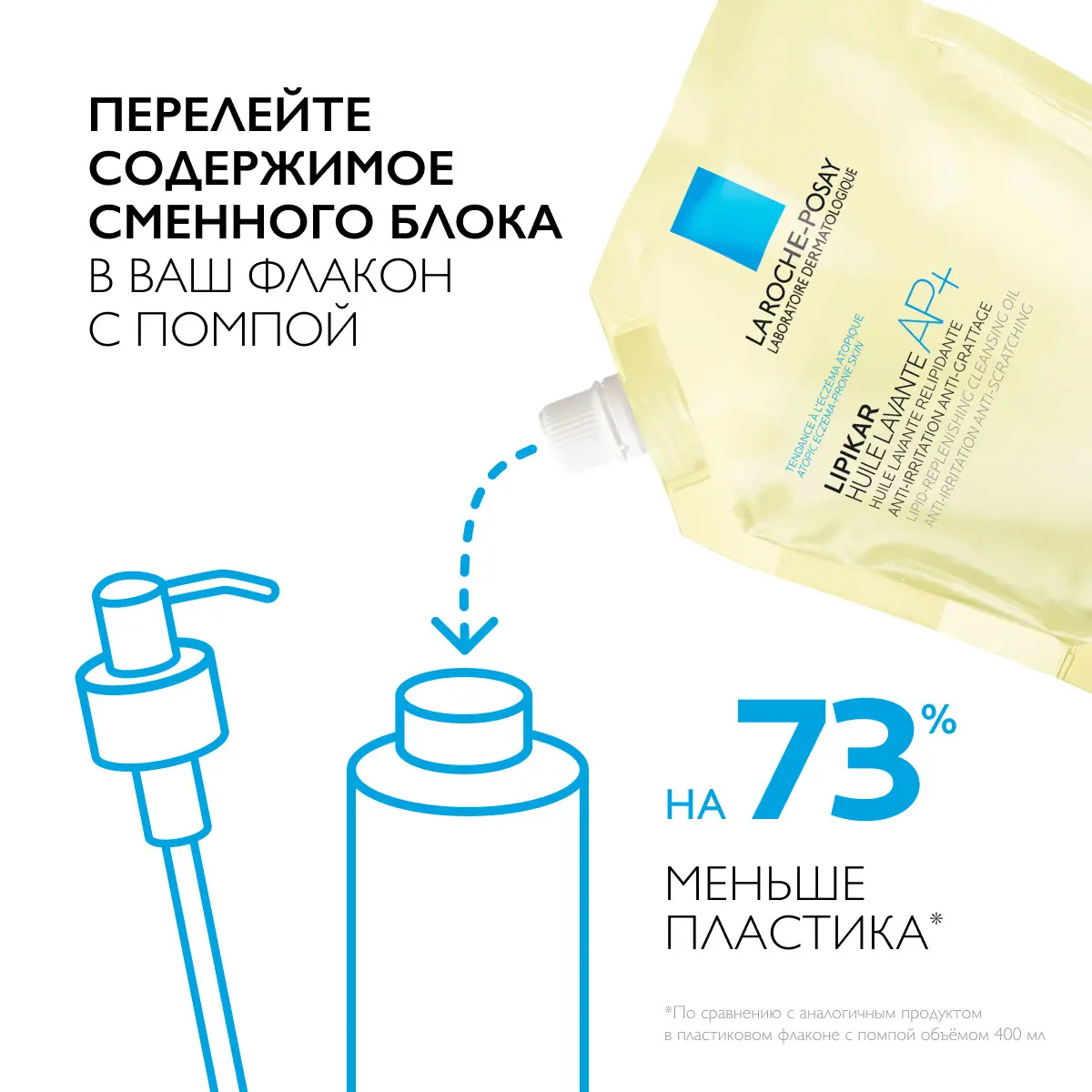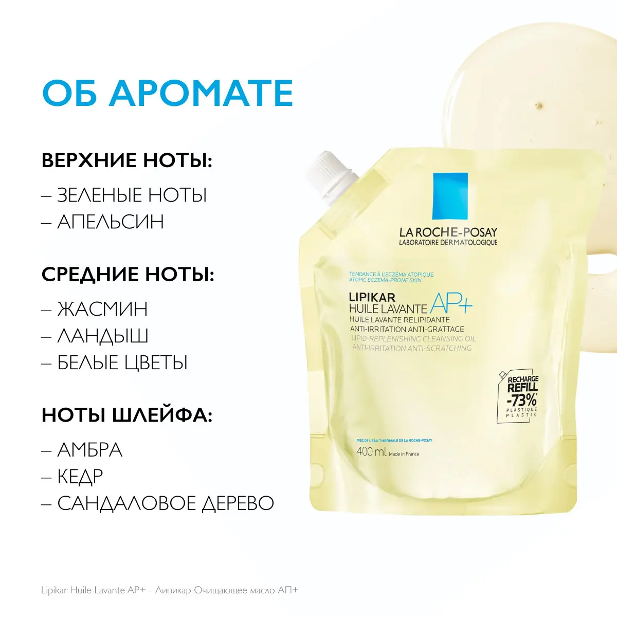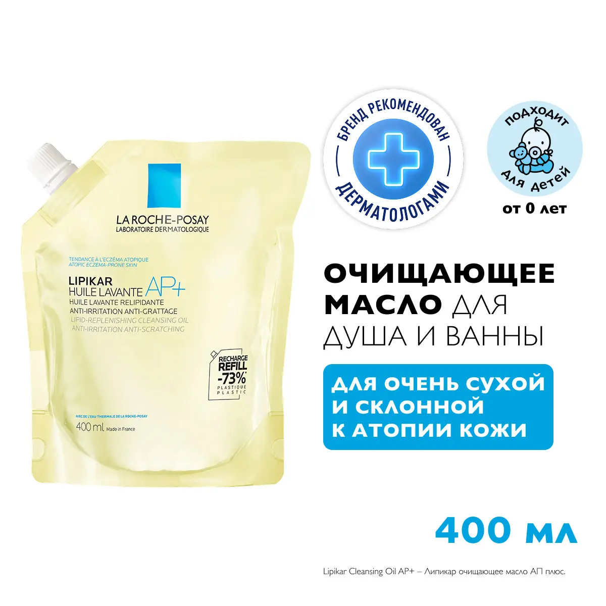 Липидовосполняющее смягчающее очищающее масло для ванны и душа AP+ для сухой и склонной к атопии кожи младенцев, детей и взрослых, сменный блок 400 мл