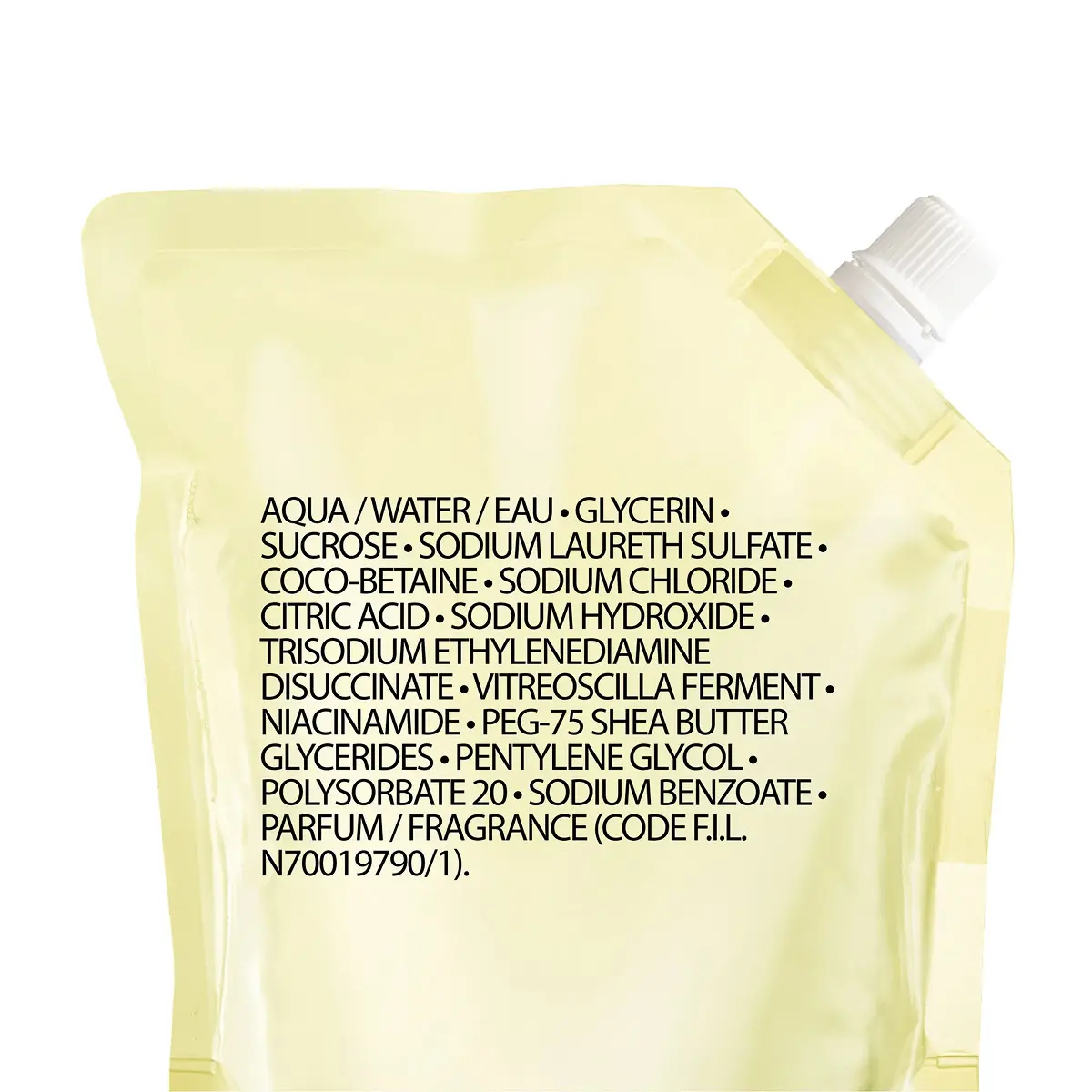 Состав: aqua / water / eau, glycerin, sucrose, sodium laureth sulfate, coco-betaine, sodium chloride, niacinamide, citric acid, peg-75 shea butter glycerides, pentylene glycol, polysorbate 20, sodium hydroxide, trisodium ethylenediamine disuccinate, vitreoscilla ferment, sodium benzoate, parfum / fragrance. code f.i.l.: n70073247/1.