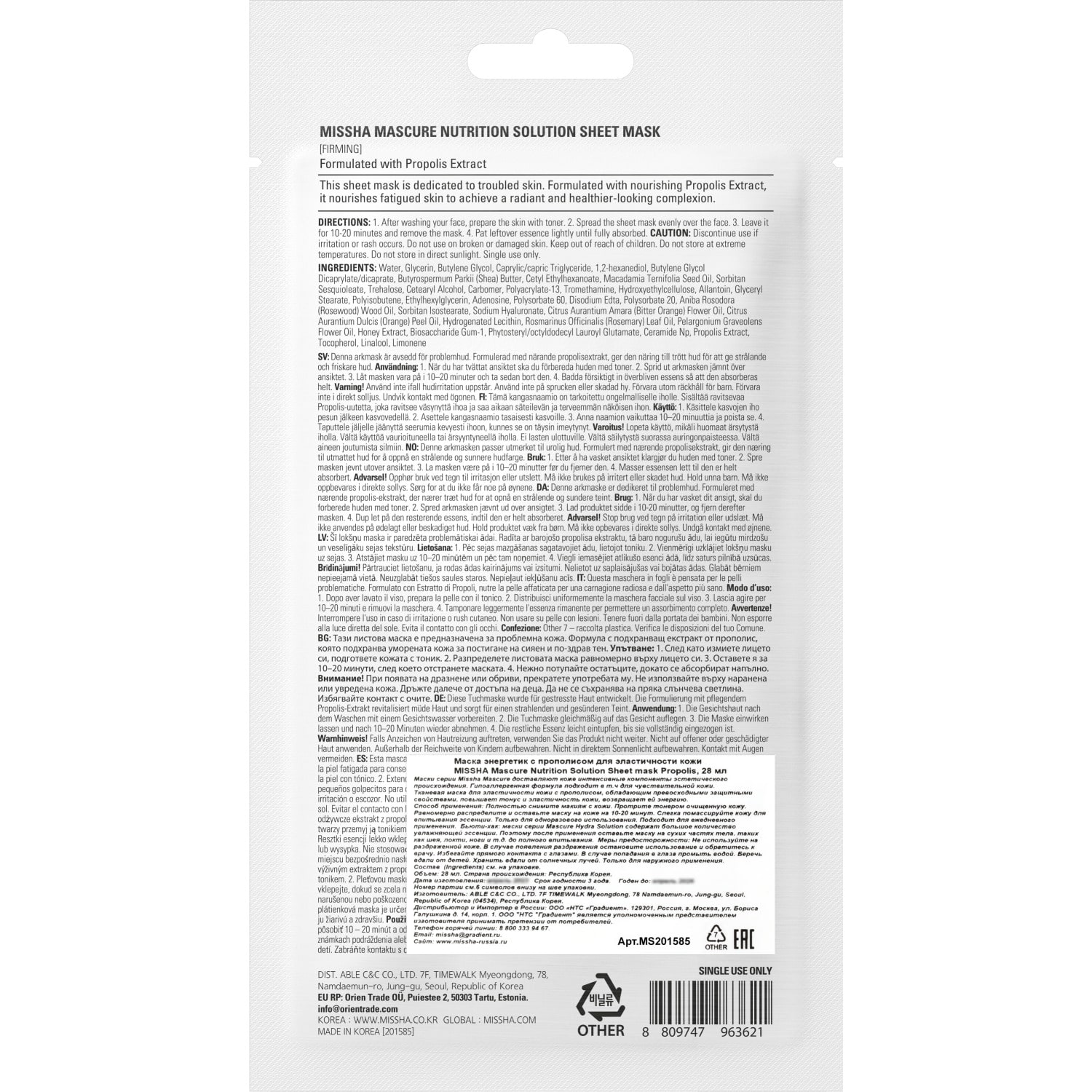 Одноразовая тканевая маска с прополисом Missha Mascure Sheet Mask Propolis предназначена для интенсивного увлажнения, восстановления и смягчения кожи.
