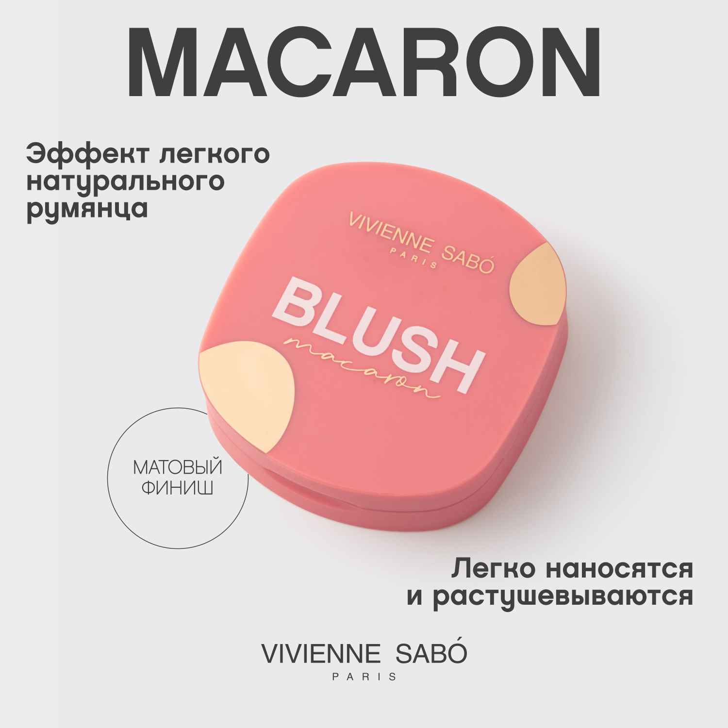 Macaron — румяна от Vivienne Sabó в четырех оттенках с матовым финишем. Это сочетание нежности, легкости и натуральности.