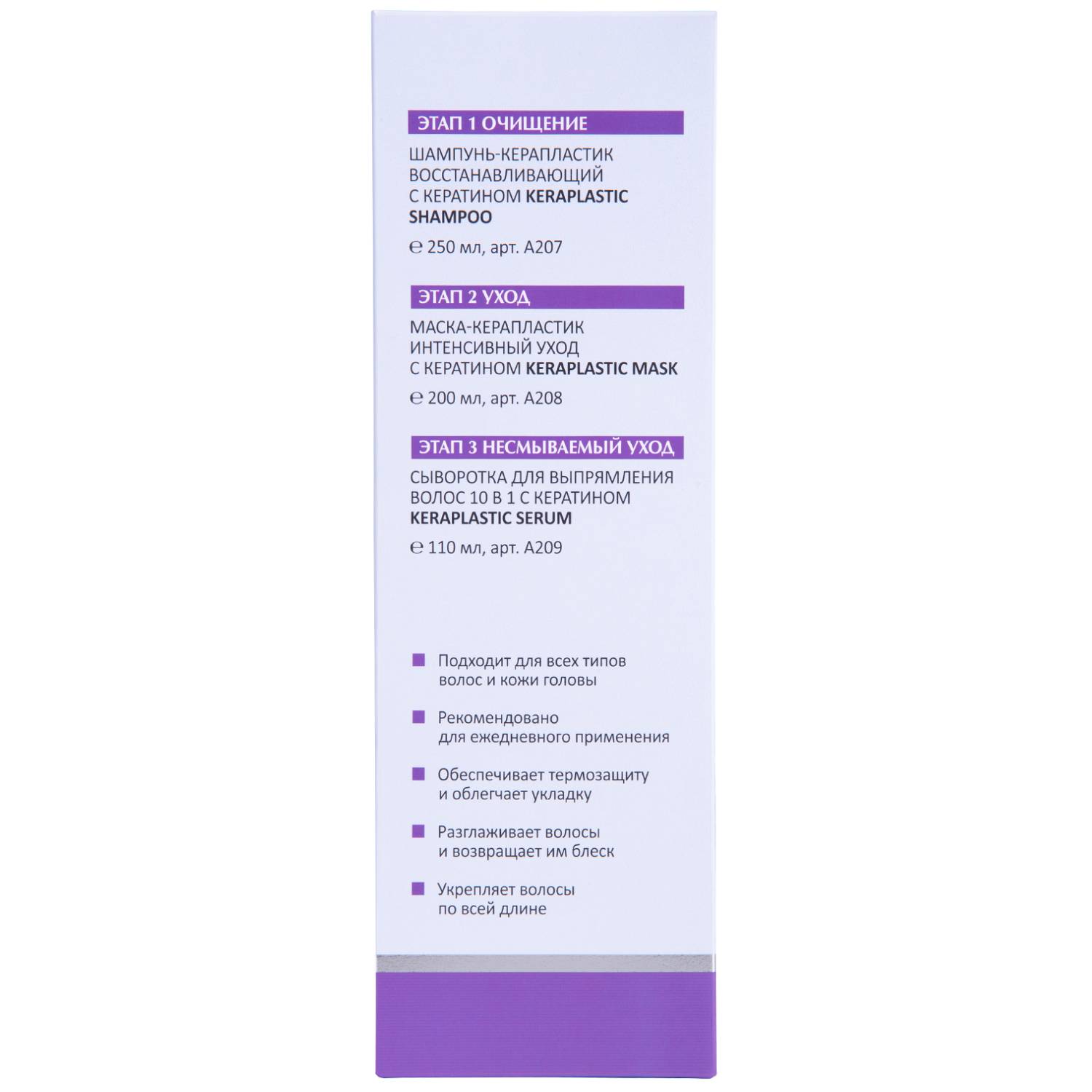 Шампунь: кератин, д-пантенол.