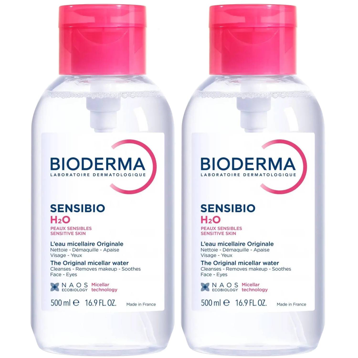 Мицеллярная вода для чувствительной кожи H20 с помпой, 2 х 500 мл