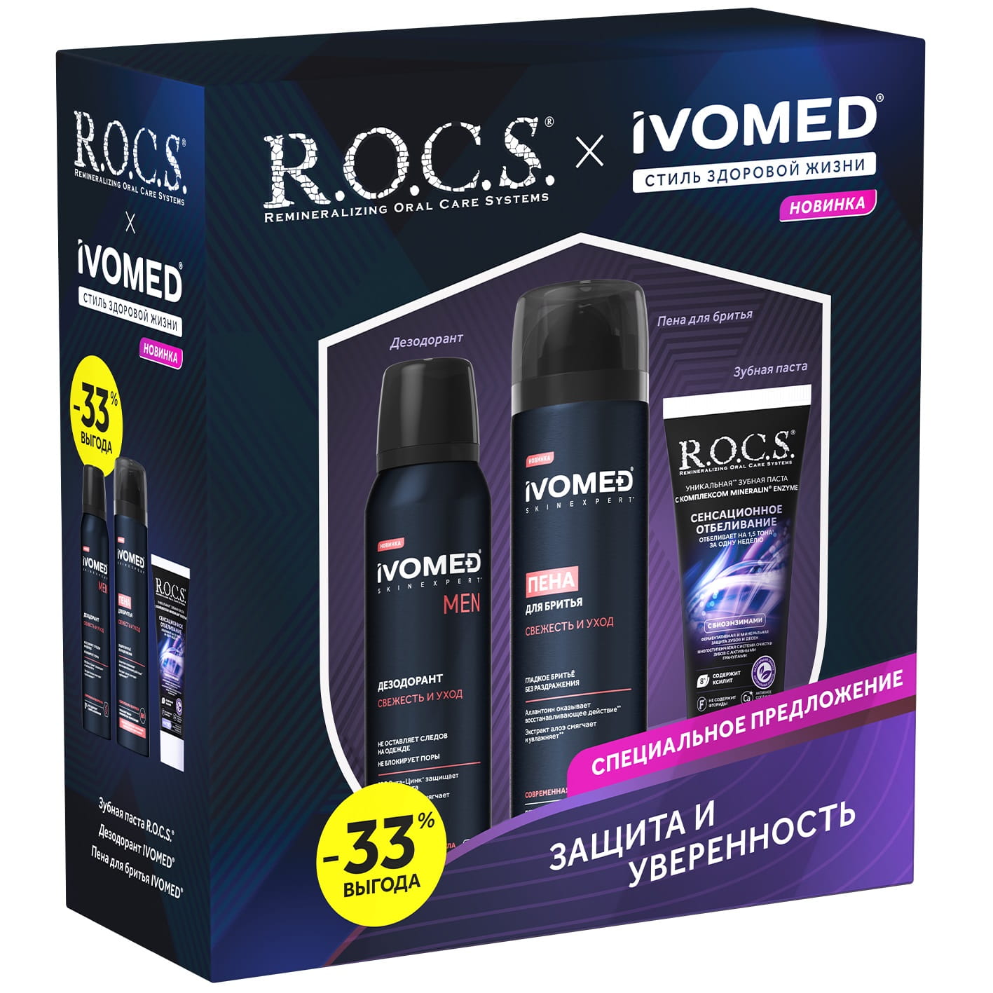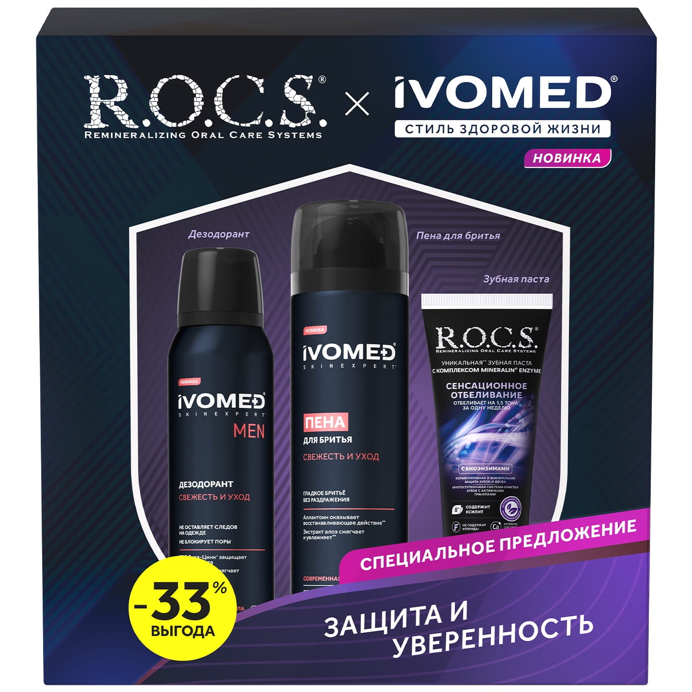 Набор для мужчин: пена для бритья 200 мл + дезодорант 150 мл + зубная паста 74 г