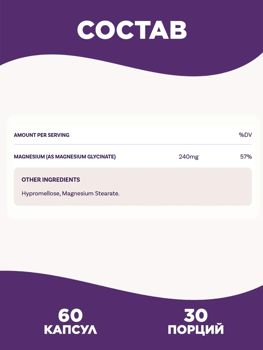 Магний глицинат Magnesium Glycinate 240 мг, 60 капсул