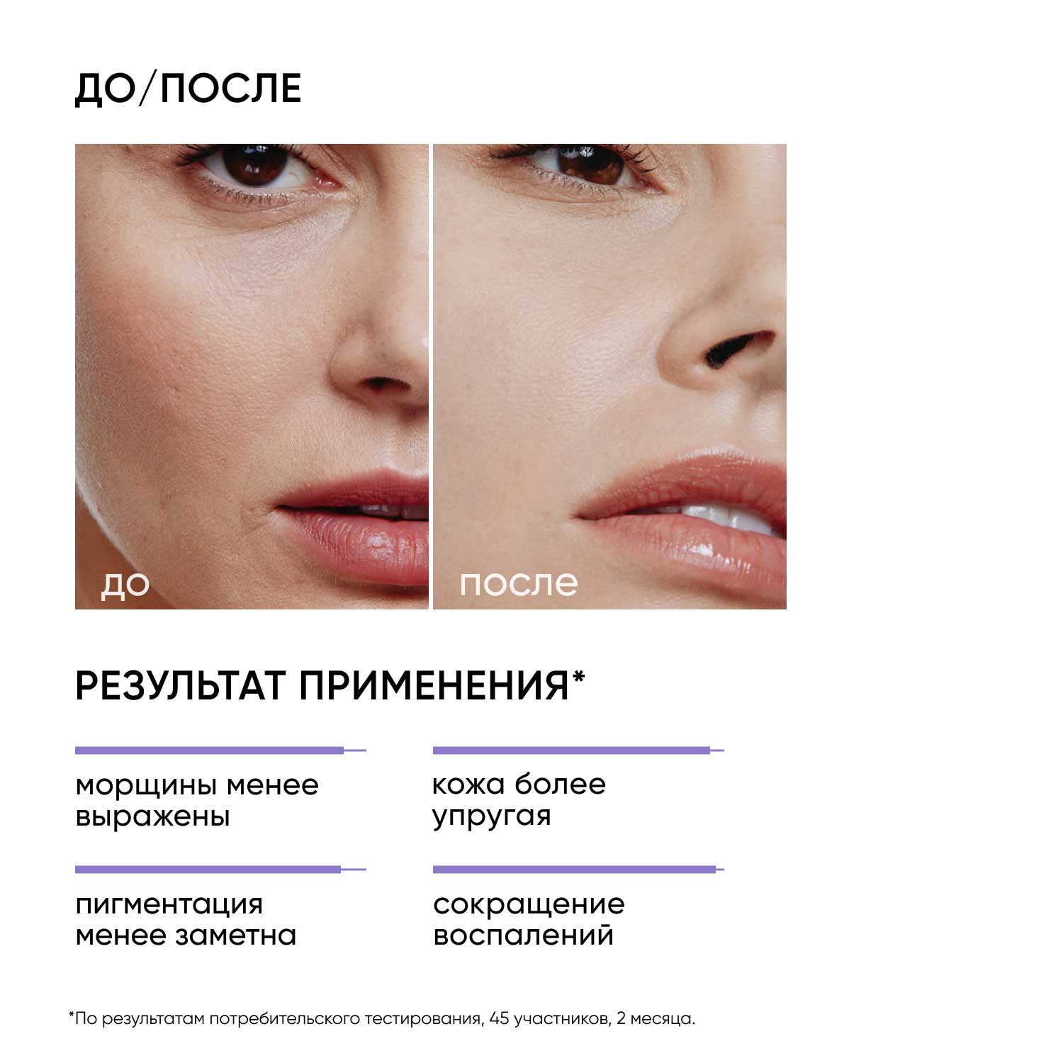 Результат применения: морщины менее выражены, ровный тон лица, более упругая и гладка кожа.