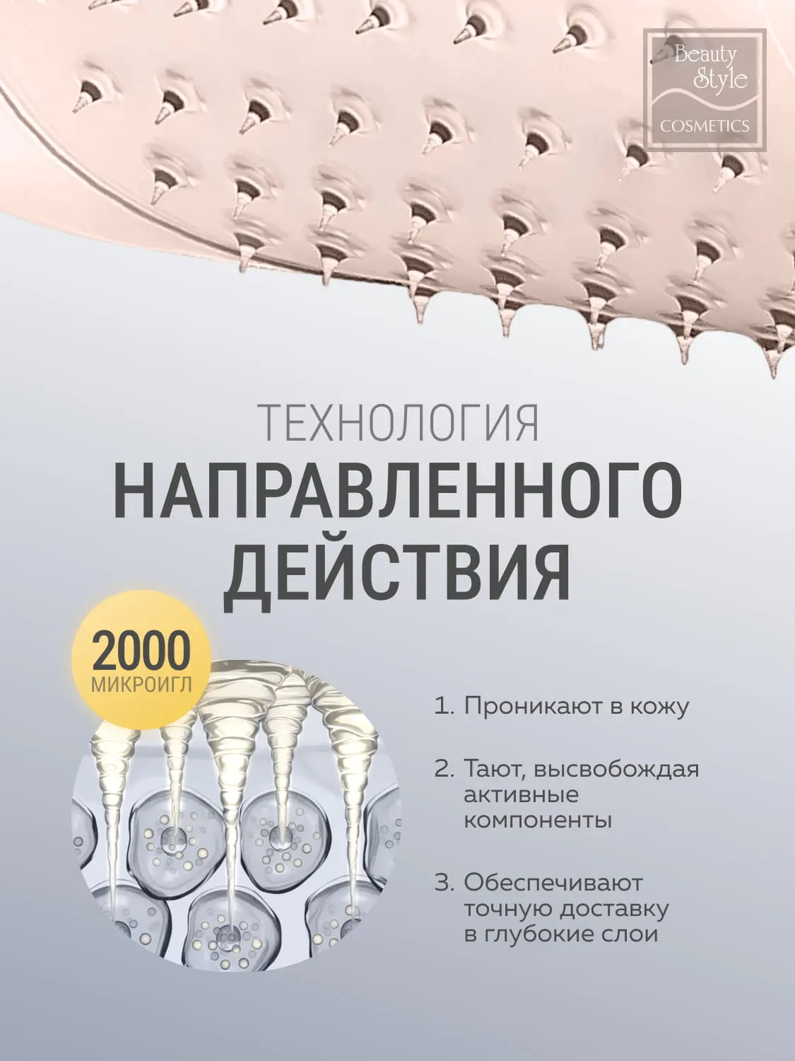 - гиалуроновая кислота — основа микроигл, глубоко увлажняет, улучшает текстуру кожи и разглаживает мелкие морщины