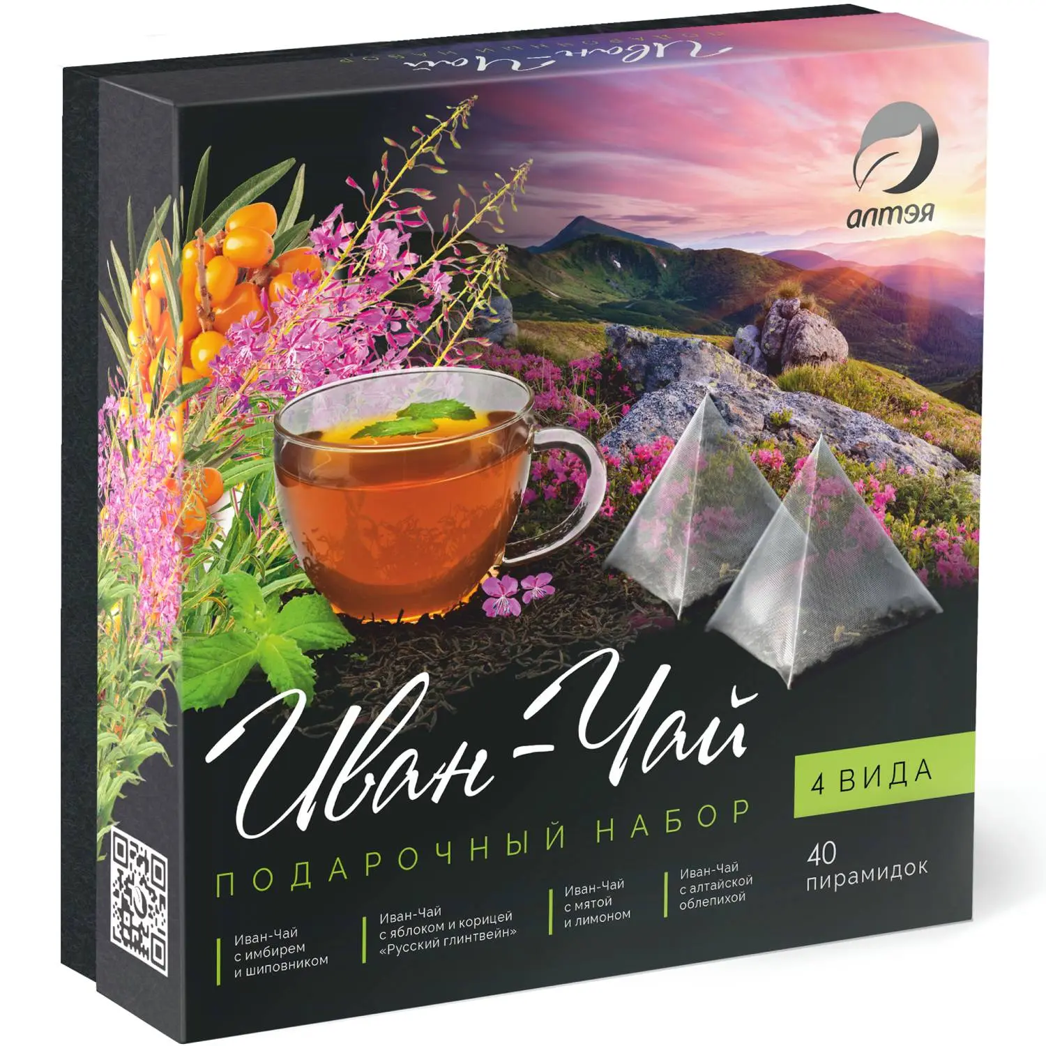 Попробуйте удивительное сочетание русского иван-чая с настоящими травами, ягодами, изысканными пряностями и другими натуральными ингредиентами. 4 уникальных купажа, упакованных в пакетики-пирамидки. Каждый вид имеет богатый вкус и неповторимый аромат.