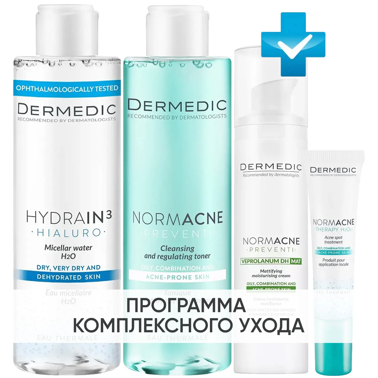 Программа Normacne комплексный уход: мицеллярная вода 200 мл + тоник 200 мл + крем 40 мл + точечный гель 15 мл