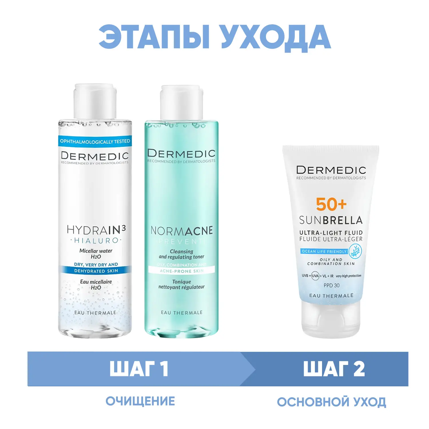 Программа Normacne очищение и основной уход: мицеллярная вода 200 мл + тоник 200 мл + флюид SPF50+ 40 мл