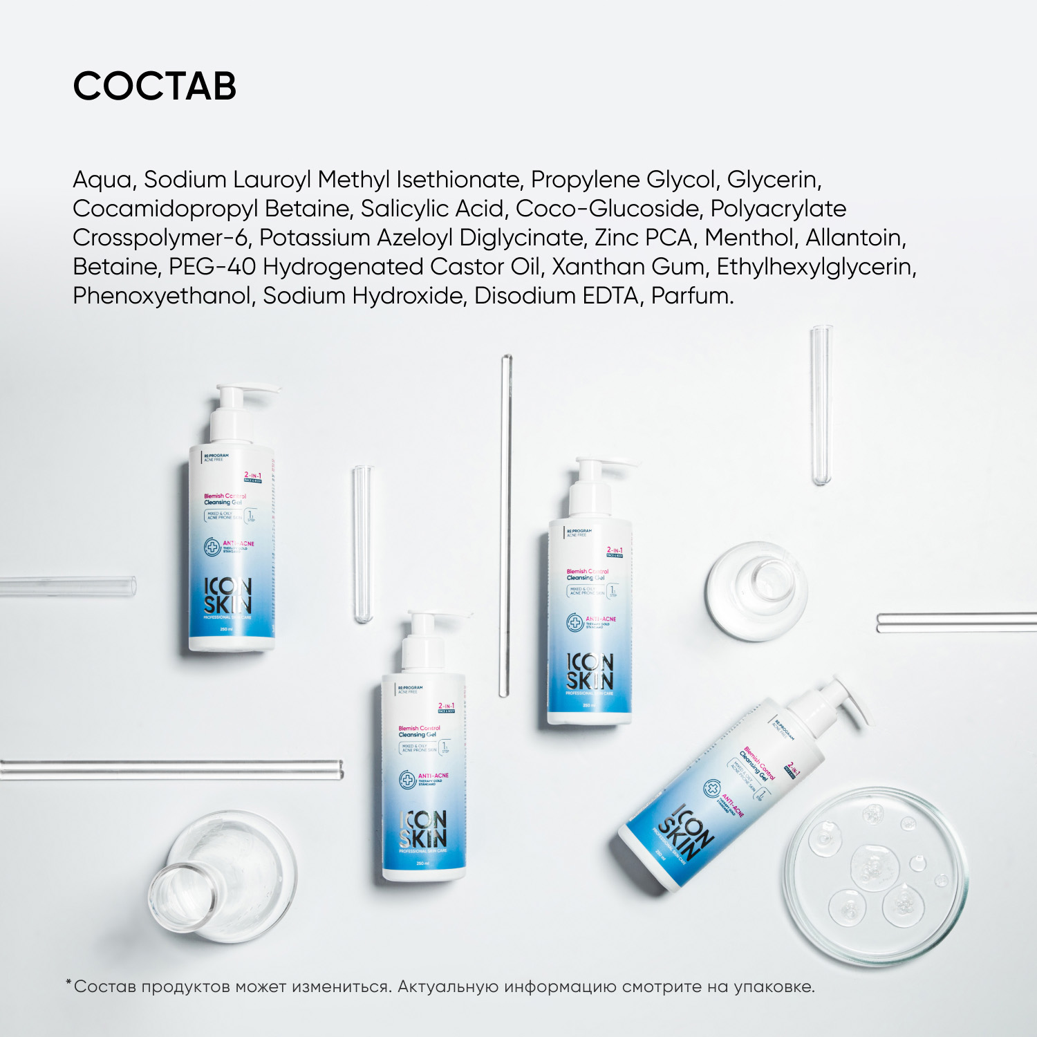 Очищающий гель 2в1 Blemish Control эффективно удаляет загрязнения и излишки себума, уменьшает воспаления и препятствует их появлению. Подходит для очищения лица и тела. Деликатно отшелушивает ороговевшие клетки, очищает поры и нормализует работу сальных желез. Уменьшает проявления воспалений, прыщей, угрей, комедонов, черных точек и других несовершенств. Выравнивает тон и микрорельеф кожи. Не пересушивает, обеспечивает ощущение чистоты и комфорта.