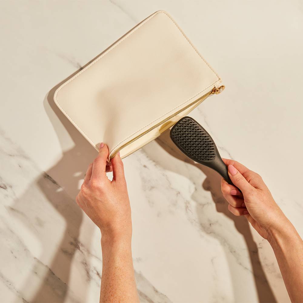 Специальное отверстие на ручке позволяет прикрепить расческу к косметичке и иметь под рукой в любой ситуации.