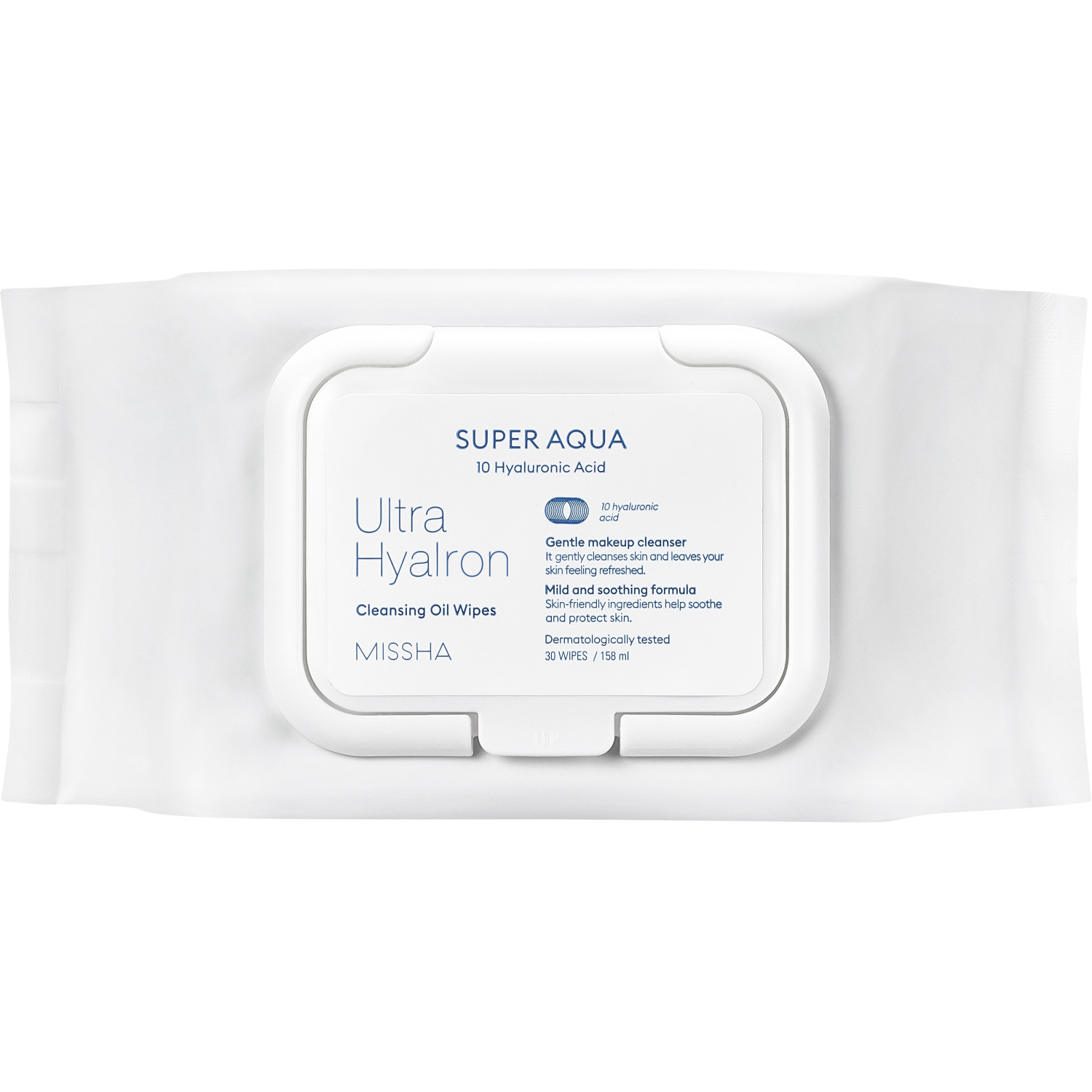 Влажные салфетки Missha Super Aqua Ultra Hyalron Oil Wipes – экспресс-средство для удаления макияжа и очищения кожи от загрязнений, излишков себума и пыли. Подходят для снятия макияжа с глаз и ежедневного очищения чувствительной кожи лица, испытывающей сухость и стянутость после умывания.