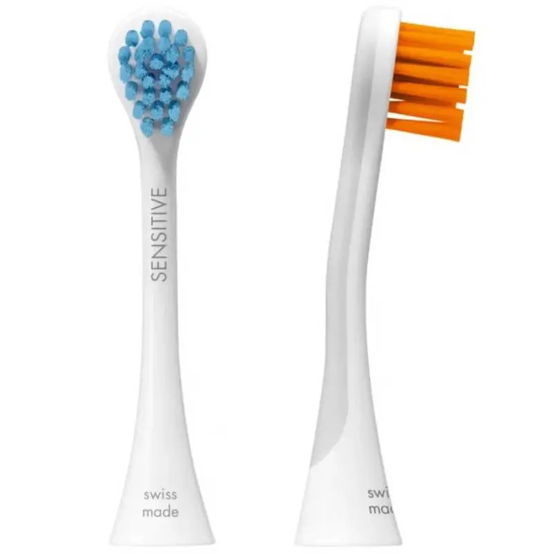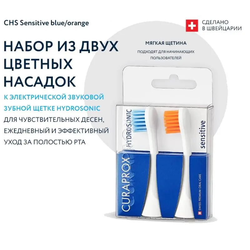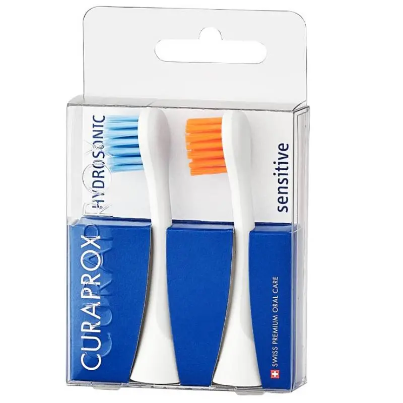 Набор из 2-х цветных сменных насадок для чувствительных десен Sensitive к звуковой щетке Curaprox Hydrosonic предназначен для режимов: