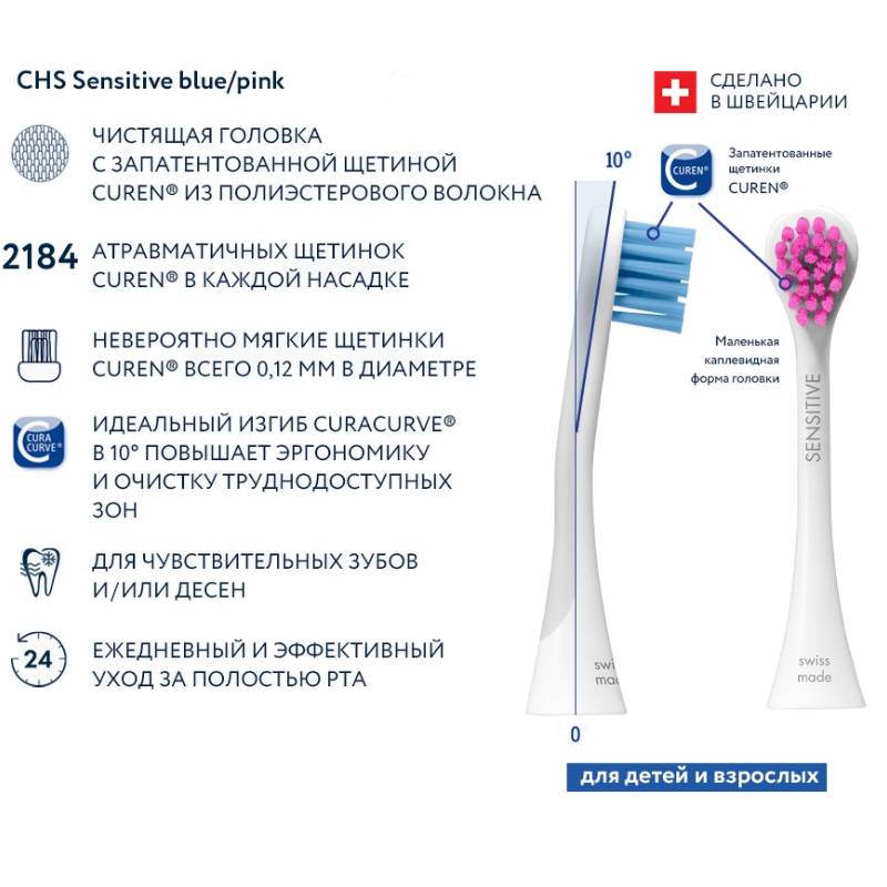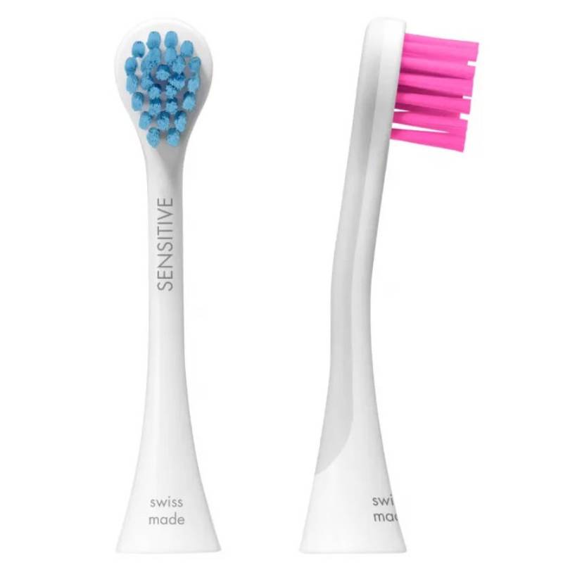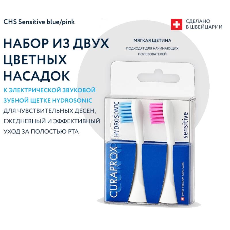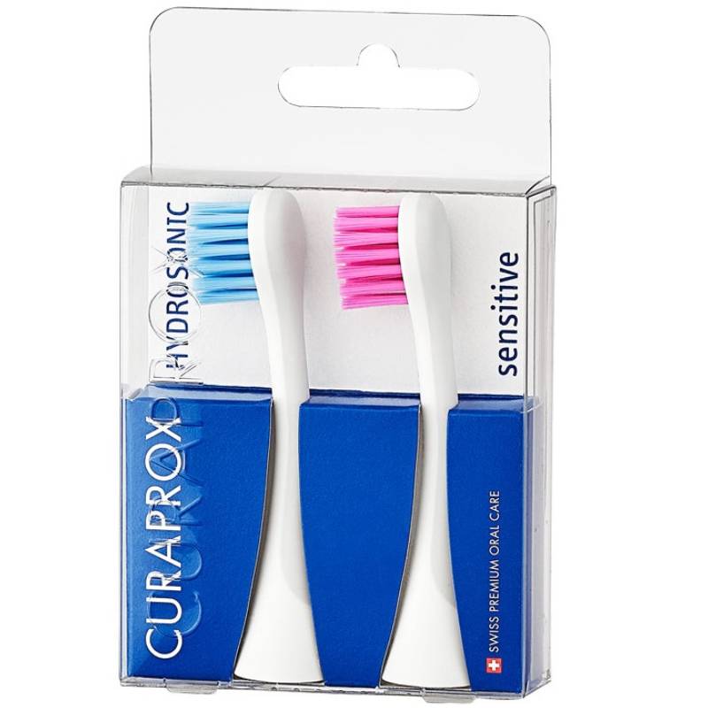 Набор из 2-х цветных сменных насадок для чувствительных десен Sensitive к звуковой щетке Curaprox Hydrosonic предназначен для режимов: