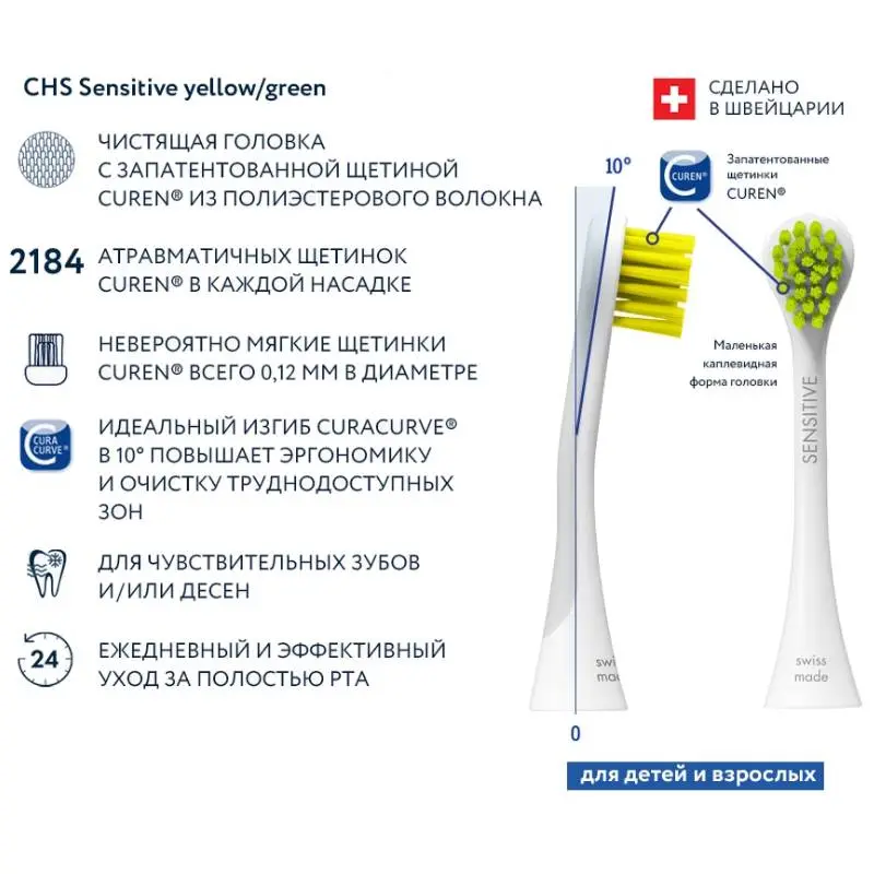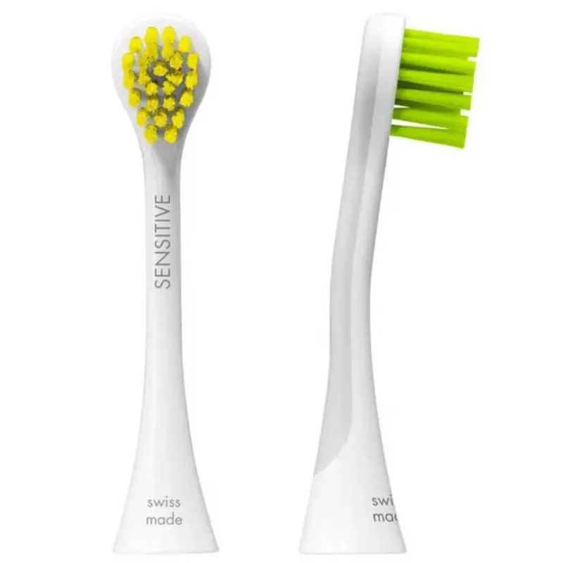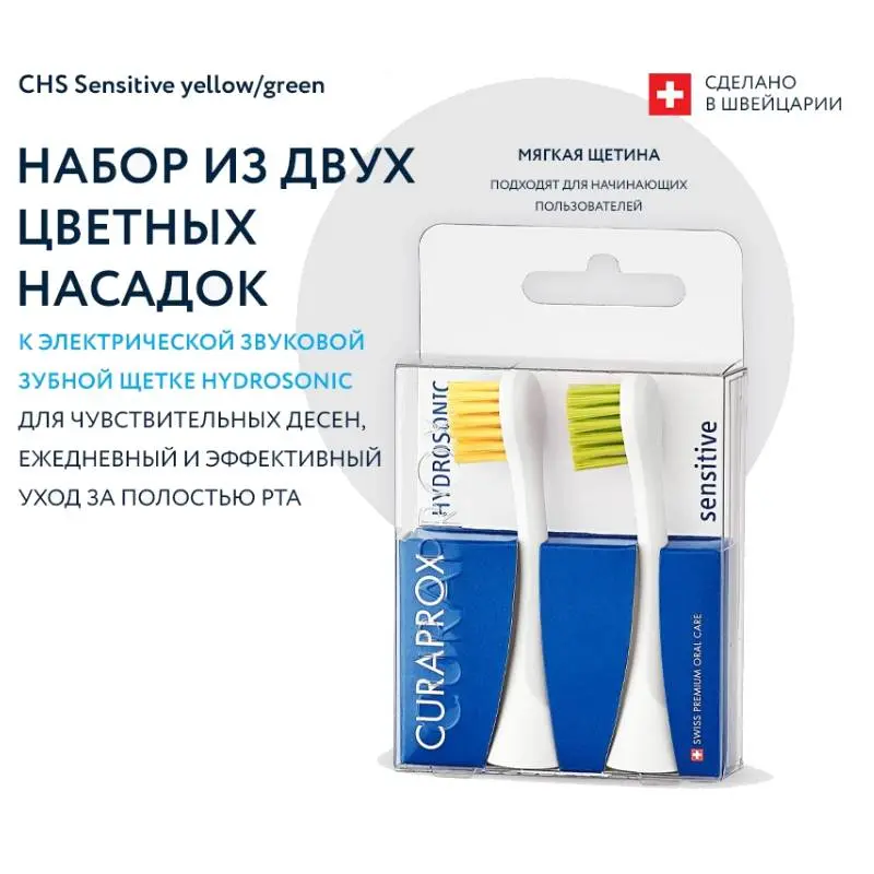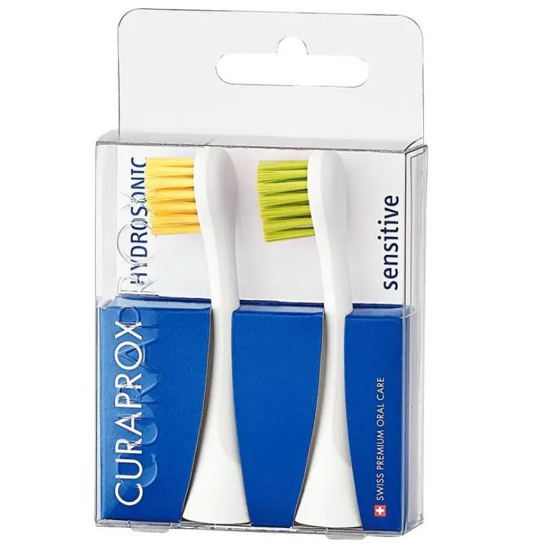 Набор из 2-х цветных сменных насадок для чувствительных десен Sensitive к звуковой щетке Curaprox Hydrosonic предназначен для режимов: