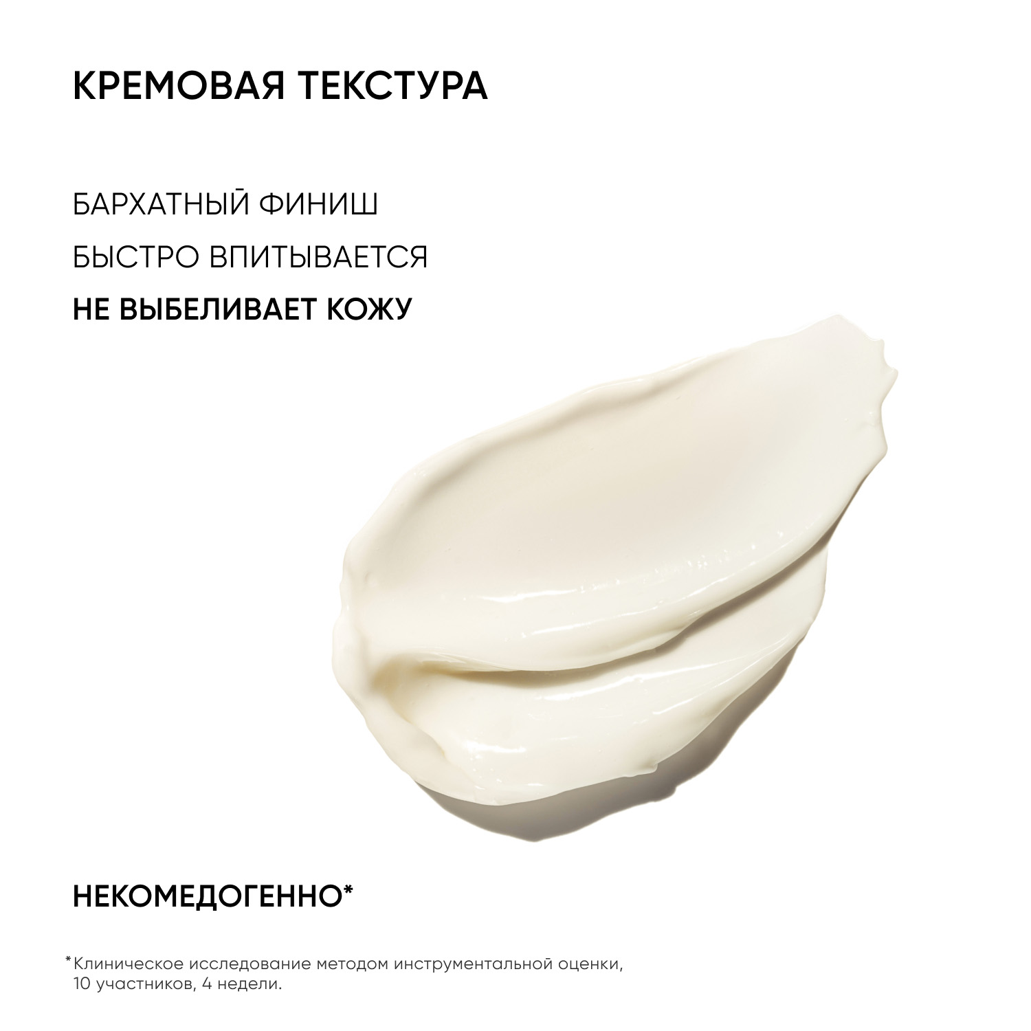 Текстура крема позволяет использовать его под макияж: равномерно распределяется и быстро впитывается, матирует кожу, оставляя бархатистый финиш.