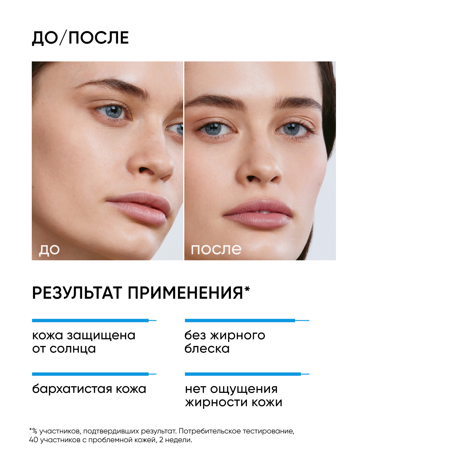 Комбинация активов в сбалансированной концентрации позволяет добиться высокой эффективности средства. Современные фотостабильные фильтры обеспечивают защиту широкого спектра от UVA- и UVB-излучений с доказанным фактором защиты 45. Формула также содержит ингредиенты с выраженной себорегулирующей, противовоспалительной и антиоксидантной активностью.