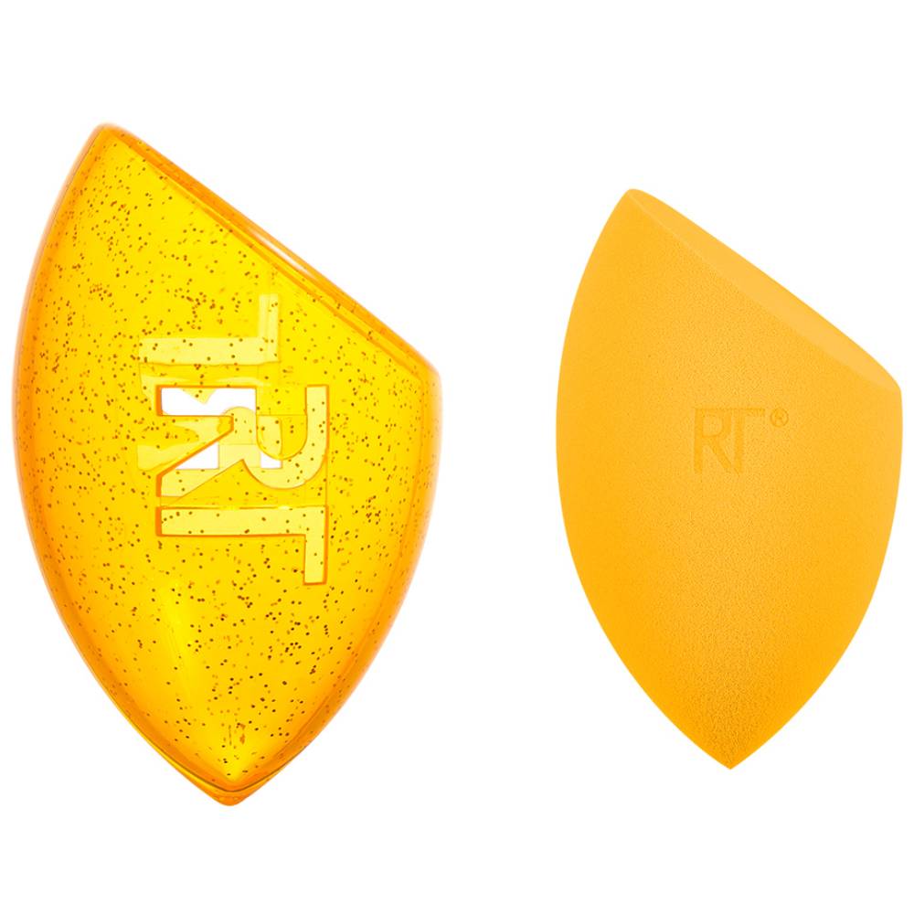 Real Techniques Night Brights! Miracle Complexion Sponge – это спонж для макияжа в ярко-желтом оттенке, в комплекте с которым идет удобный футляр для путешествий. Благодаря такому кейсу вы можете быть спокойны за сохранность и гигиеничность спонжа в поездке. Сам спонж имеет запатентованная форму, которая позволяет добиться идеально ровного и натурального тона лица. Может использоваться как для проработки крупных участков лица (лба, щек, подбородка), так и для более мелких зон (области под глазами, крыльев носа).