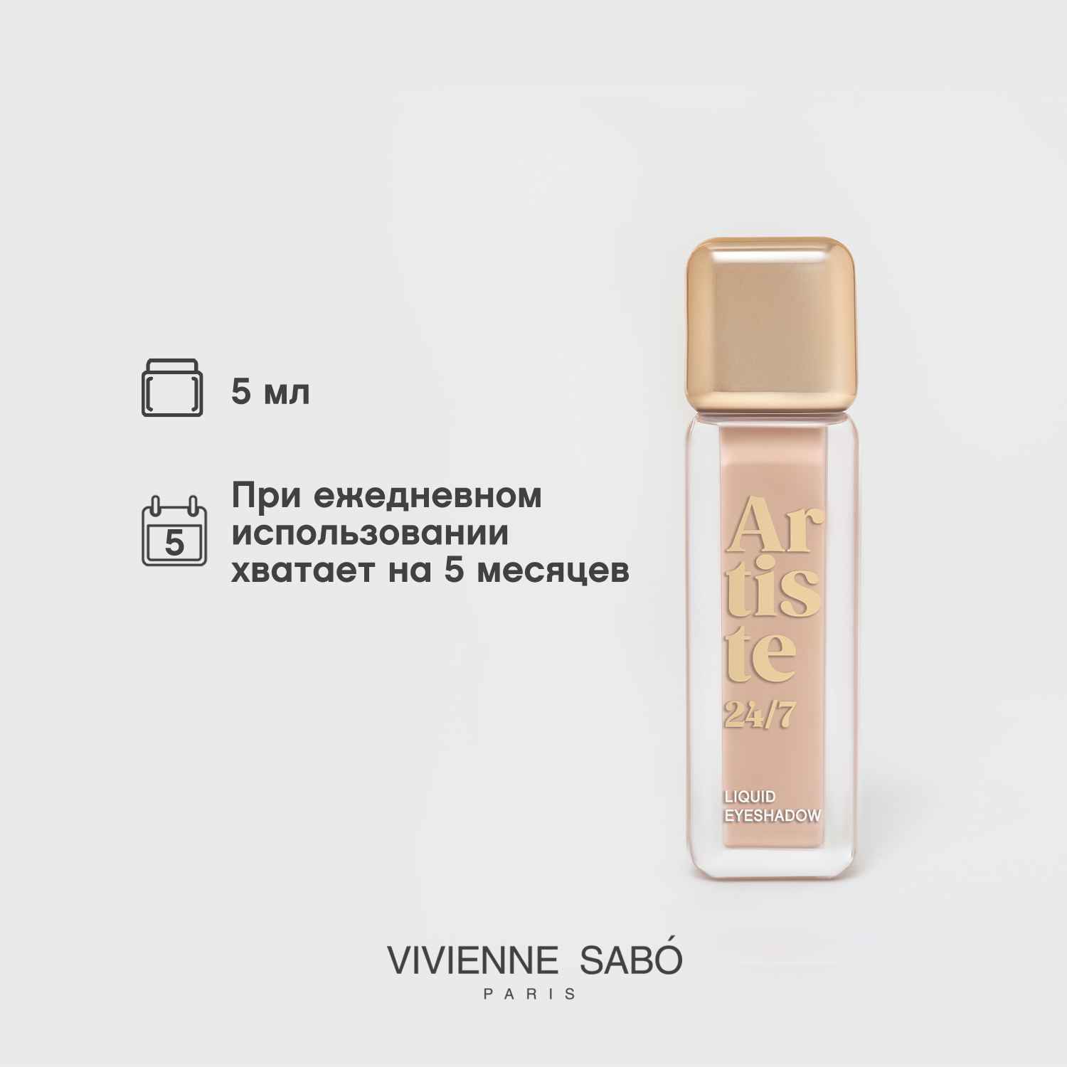 Тени от Vivienne Sabó доступны в трех мерцающих шиммерных, пяти водостойких матовых и четырех сатиновых тонах с эффектом металлик и атласным финишем. Они быстро фиксируются на коже, не стягивая ее, не скатываются и не трескаются. Благодаря миниатюрному мягкому аппликатору их удобно наносить на веко. Тени упакованы в тактильно приятный обтекаемый флакон с золотой крышкой.