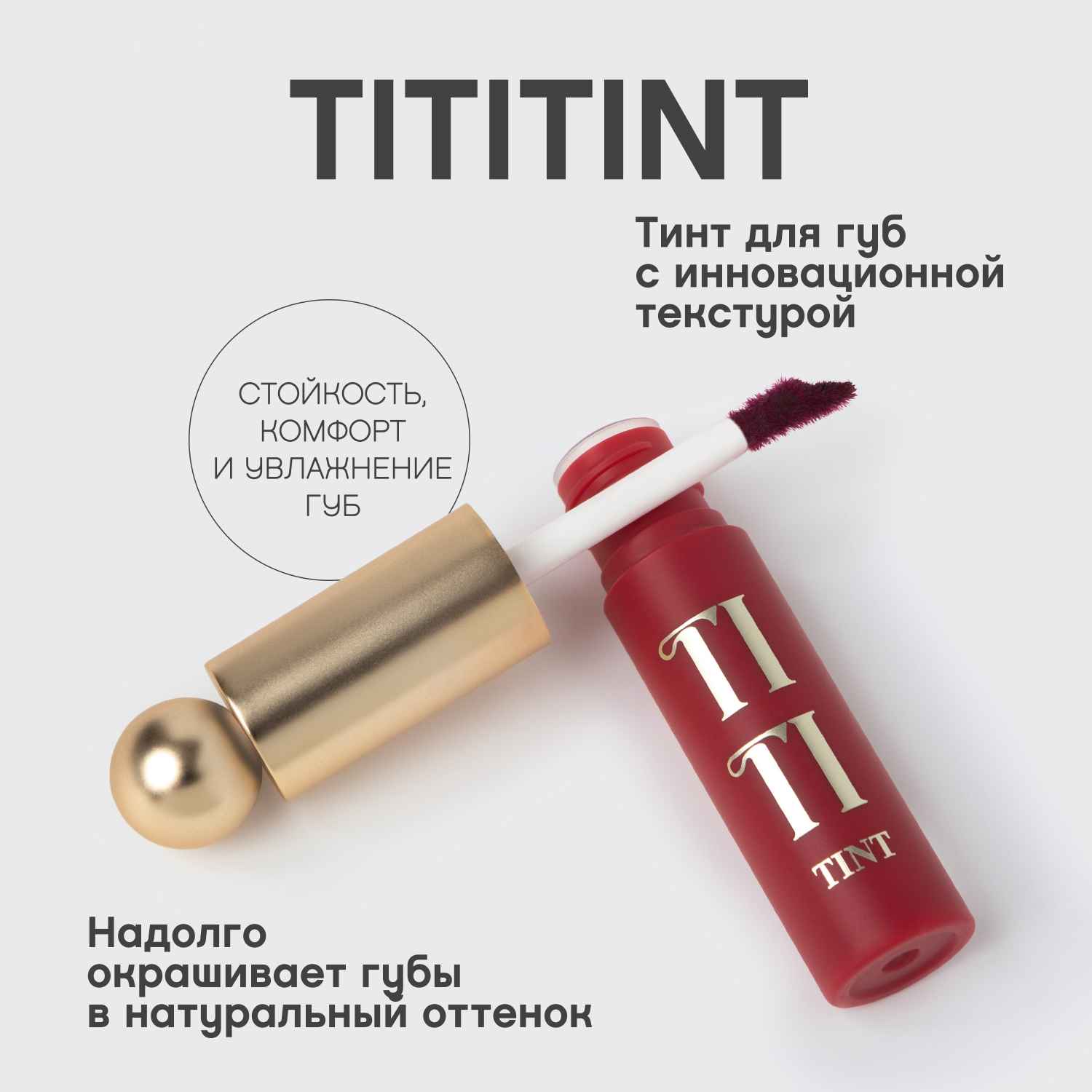 Шесть цветных тинтов Tititint с палитрой от кораллового 01 до насыщенного винного оттенка 06 имеют мягкую гелево-кремовую текстуру для макияжа с влажным финишем. Стойкая и тинтующая, но в то же время нежная текстура обволакивает губы невесомой вуалью, надолго окрашивая их в натуральный оттенок.