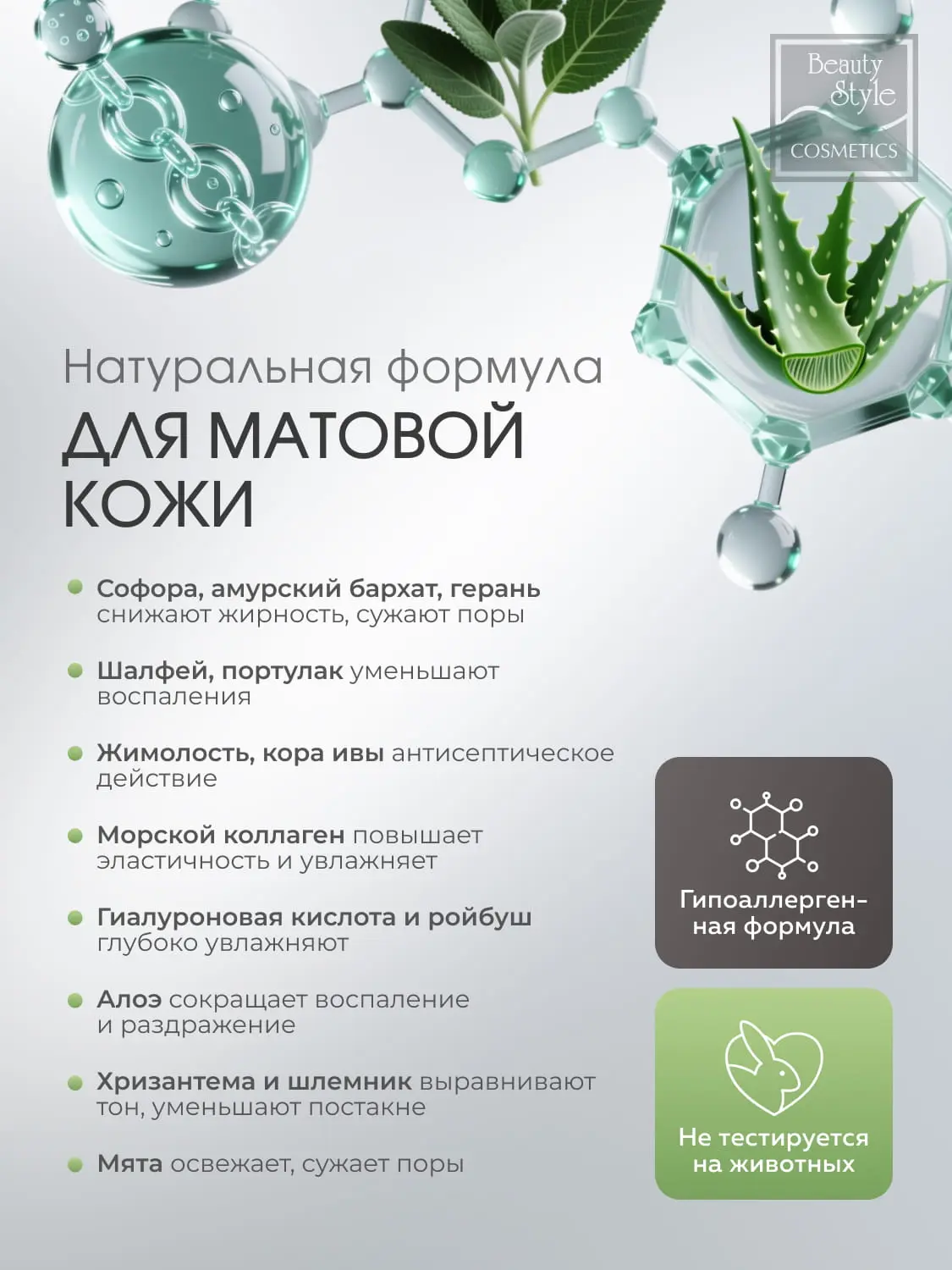 - двойное действие - матирует и увлажняет одновременно, контролирует себум без пересушивания