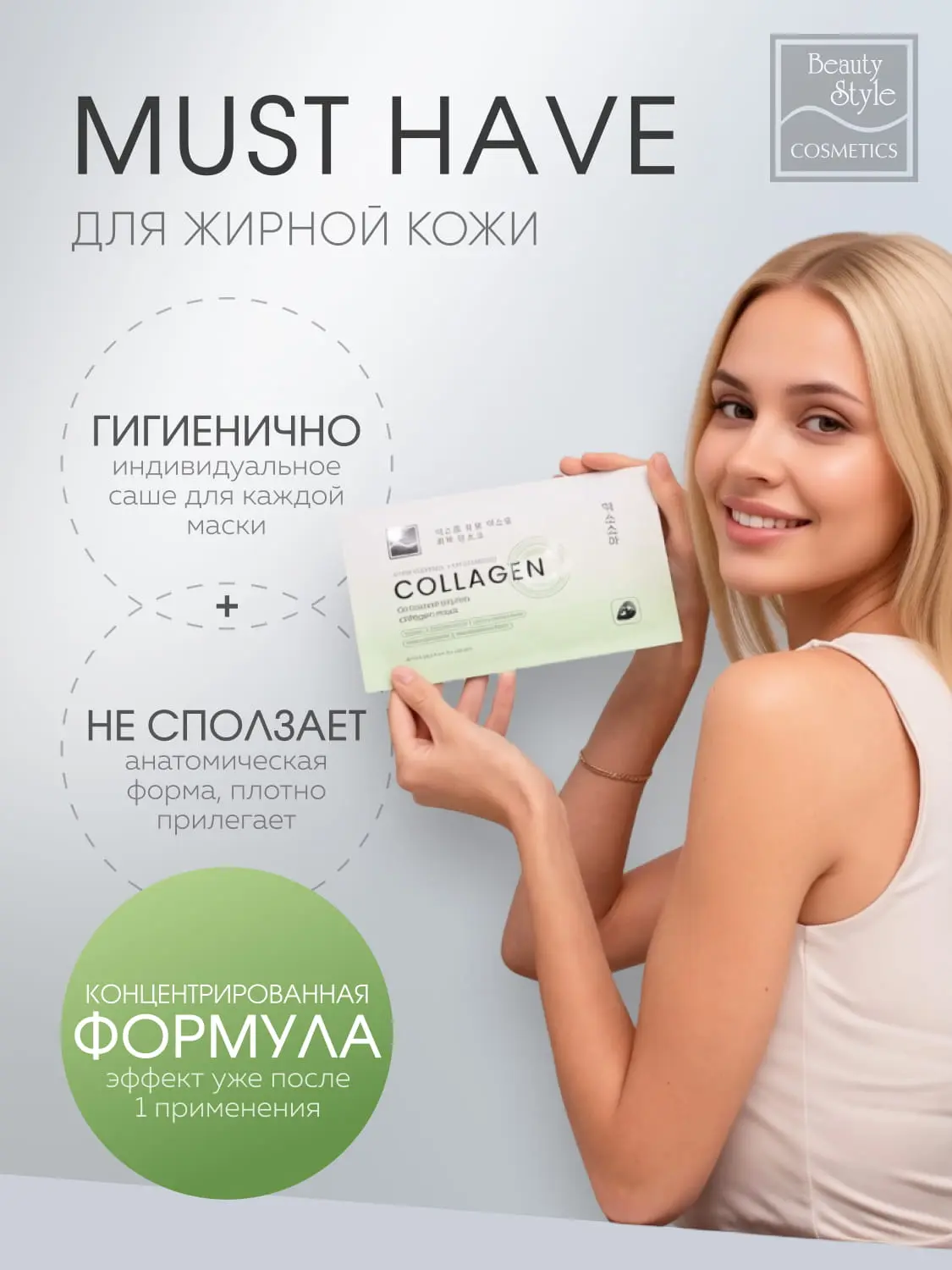 Тканевая себорегулирующая увлажняющая маска сочетает контроль себума без пересушивания, коллагеновую поддержку и глубокое увлажнение. Маска контролирует салоотделение, сужает поры и предупреждает воспаления, глубоко увлажняя кожу. Тончайшая тканевая основа плотно прилегает, делая жирную и комбинированную кожу матовой, упругой и свежей всего за 20 минут