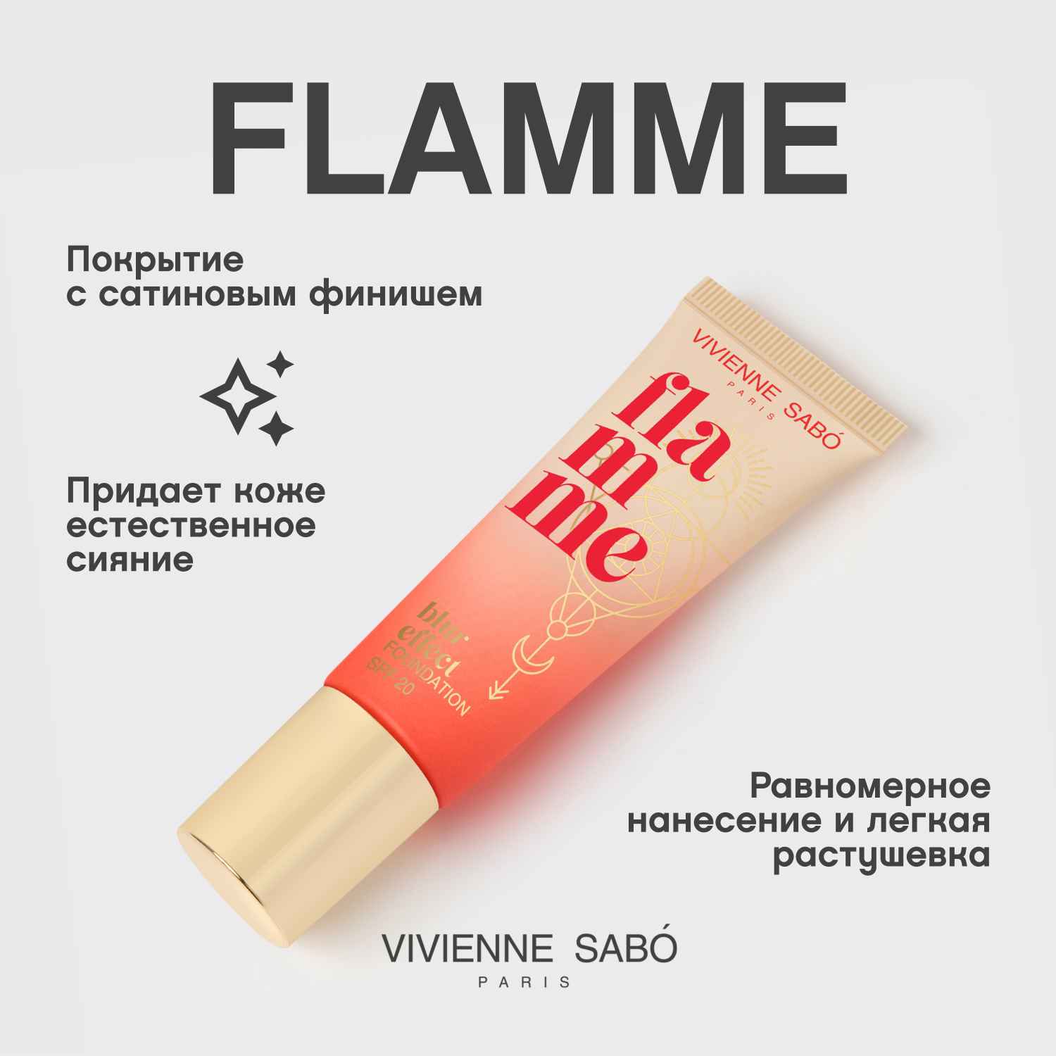 Flamme — тональный крем от Vivienne Sabó с SPF20 и блюр-эффектом. Он дополнит ежедневный макияж летом и защитит от негативного действия солнечных лучей.