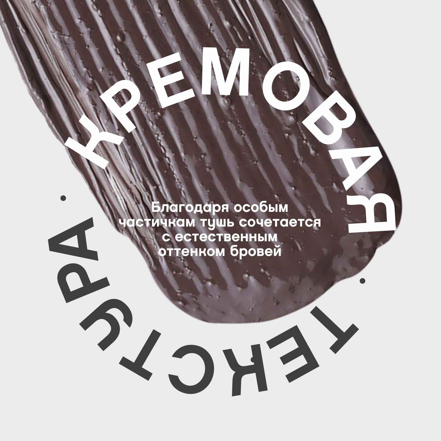 Тушь обволакивает каждый волосок, делая цвет бровей насыщеннее или приглушая темный натуральный тон, придает здоровый блеск, объем и аккуратно фиксирует форму. Благодаря особым частичкам в кремовой текстуре она сочетается с естественным оттенком бровей. Формула туши содержит увлажняющие компоненты для ухода за волосками и кожей в области бровей, защиты от вредного воздействия внешних факторов.