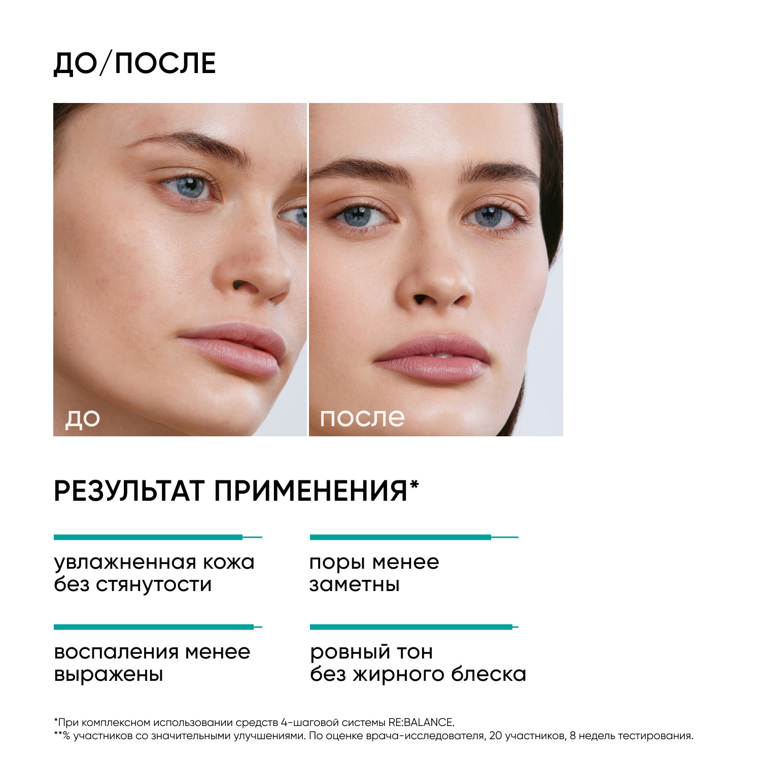 Ключевые ингредиенты формулы работают в комплексе и позволяют добиться состояния, при котором кожа выглядит свежей и здоровой — без избыточного жирного блеска и сухих участков, появившихся вследствие обезвоженности.