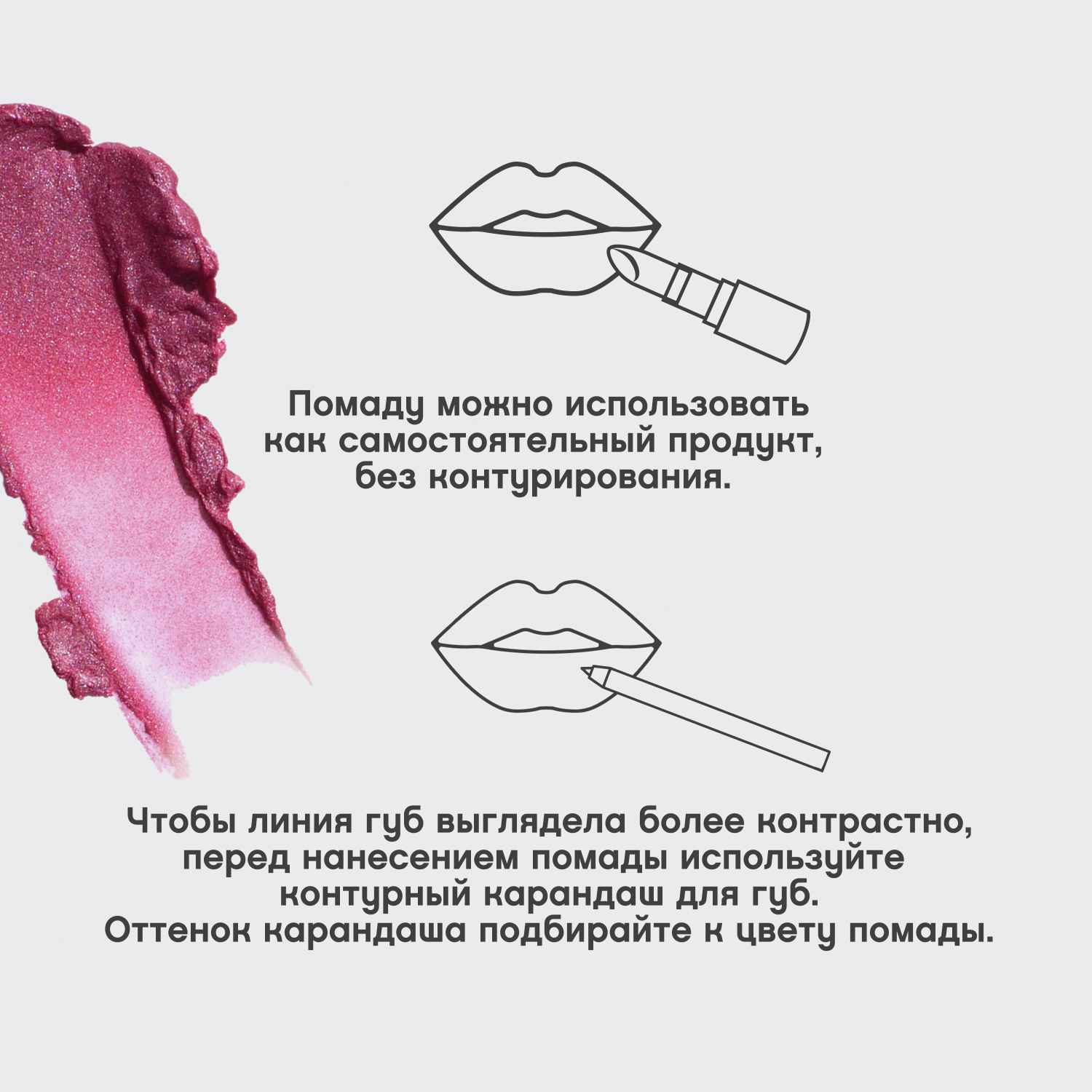 Наносить на губы обычным способом или кистью.