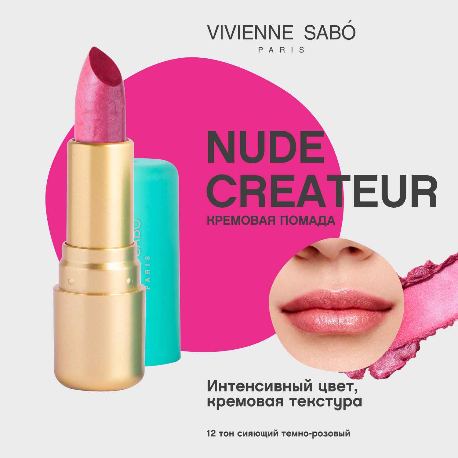 Губная помада, оттенок 12 сияющий темно-розовый