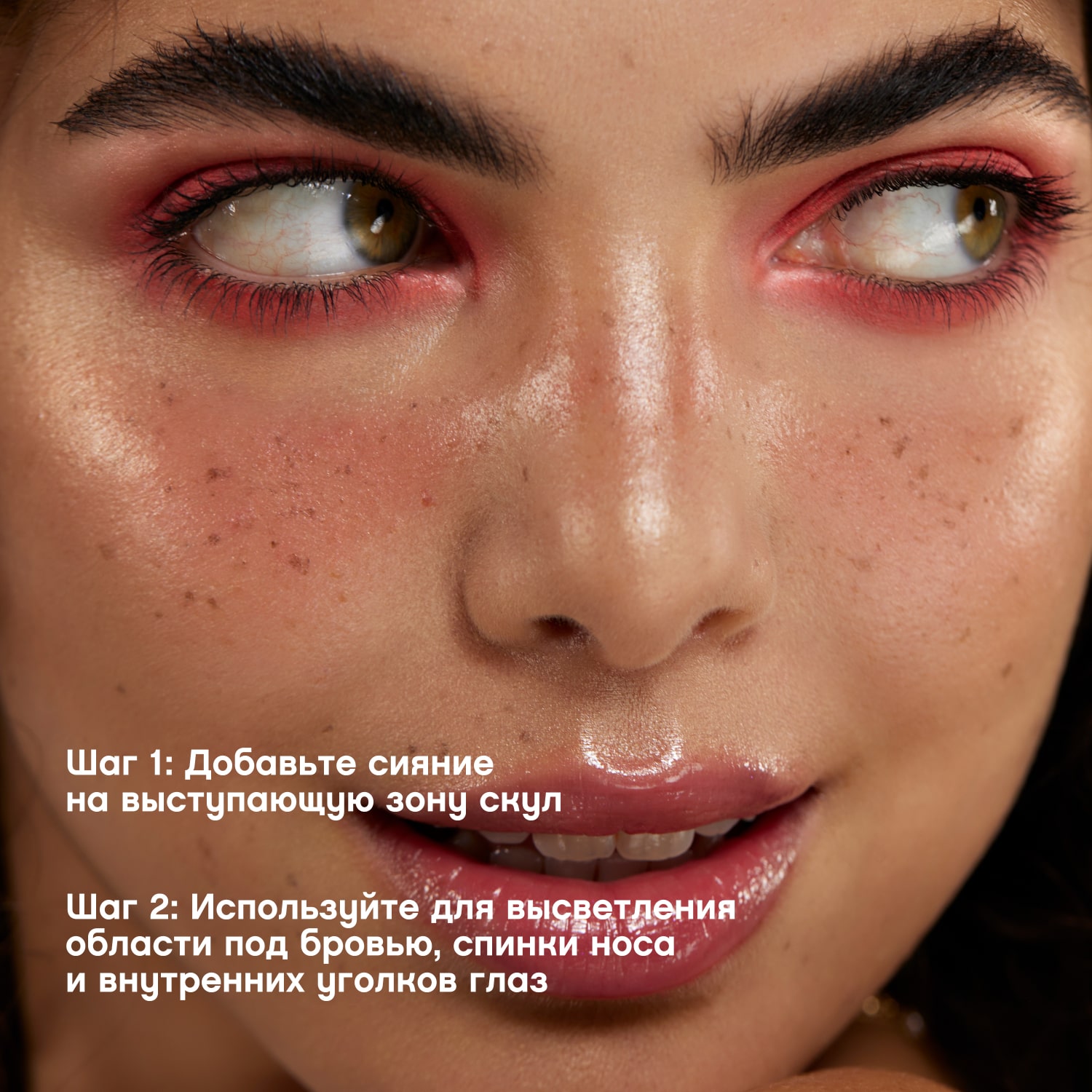 Хайлайтер используйте для высветления отдельных зон: верхняя часть скул, область под бровью, спинка носа и внутренние уголки глаз. Наносите средство пальцами или кистью. Летом хайлайтер можно наносить и на открытые участки тела – на ключицы, зону декольте и даже на ноги. Используйте для этого широкую пушистую кисть для пудры.