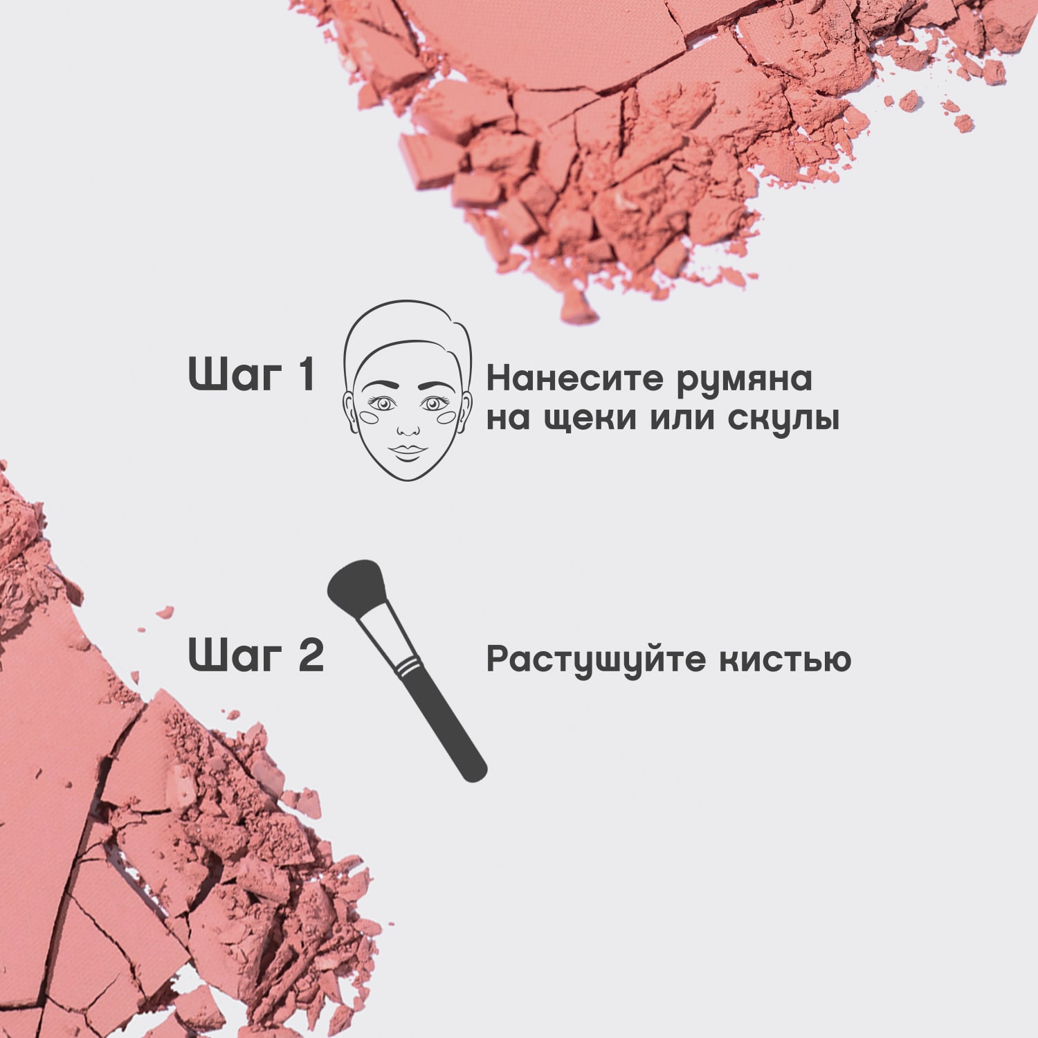 Наносить легким движением кисти на "яблочки" щек.