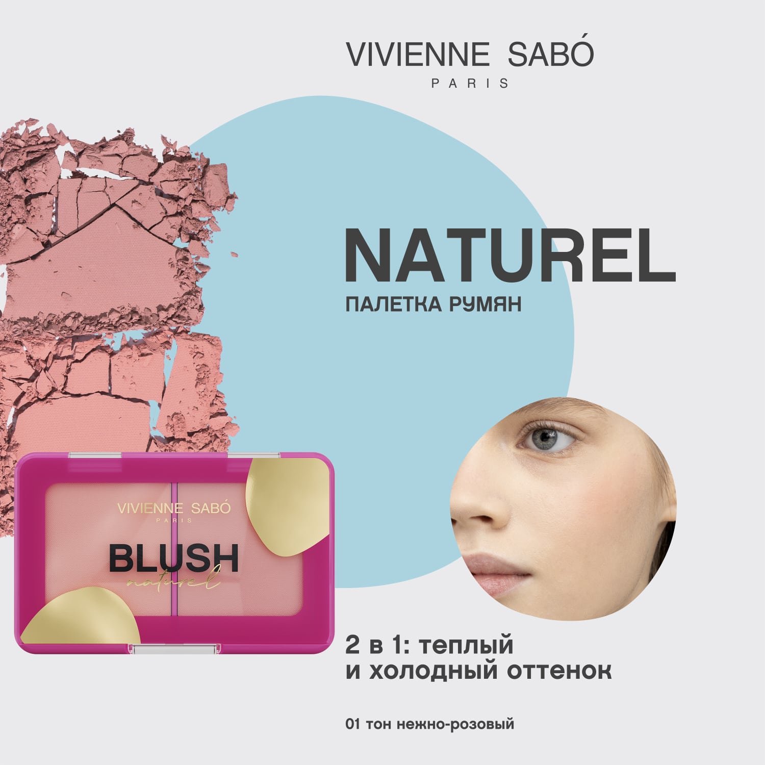 Палетка румян, оттенок 01 нежно-розовый