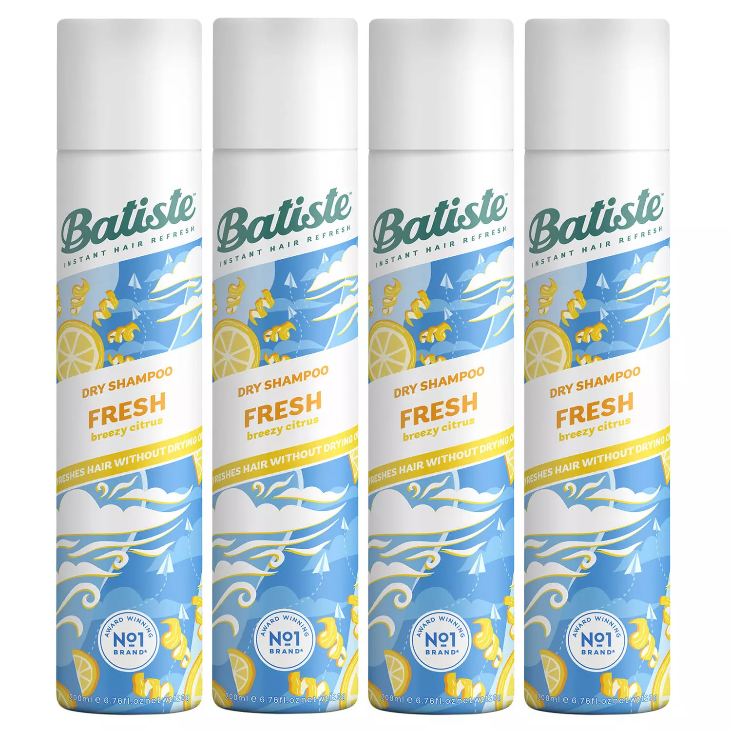 В набор входят четыре флакона сухого шампуня для волос Fresh с ароматом свежести, 200 мл